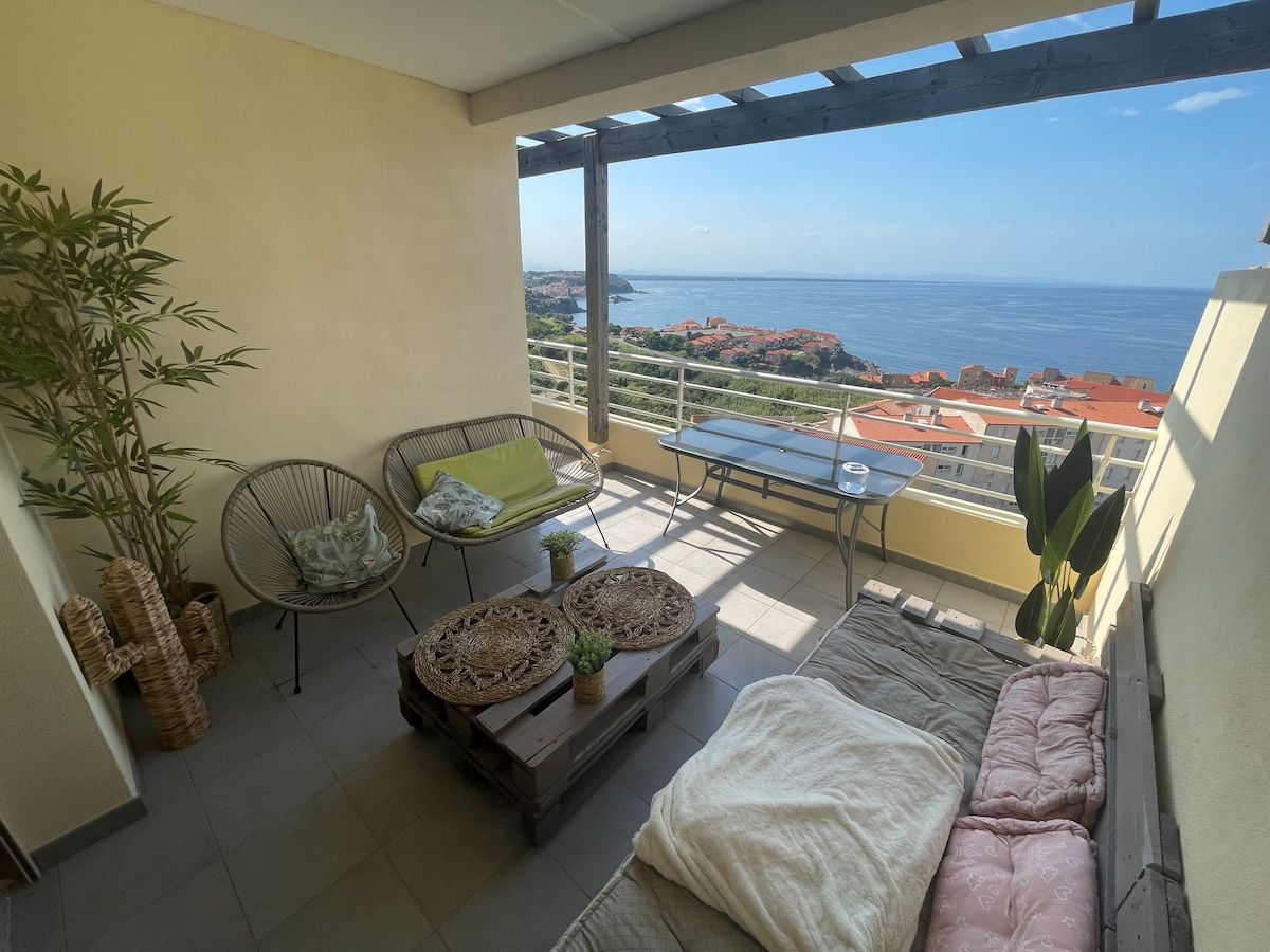 Profitez d’une villa sur les hauteurs de Collioure avec une terrasse de 20m² qui offre une vue panoramique exceptionnelle sur la mer. Bénéficiez d’une toute nouvelle cuisine équipée et de nouveaux services : climatisation, fibre-wifi, smart tv, équipement. La villa est située au sein d’une copropriété qui dispose d’une grande piscine. Dotée d’une place de parking privée, très prisée à Collioure, vous avez accès à tout à pied : 10 minutes de Collioure, moins de 10 minutes de 2 plages.
