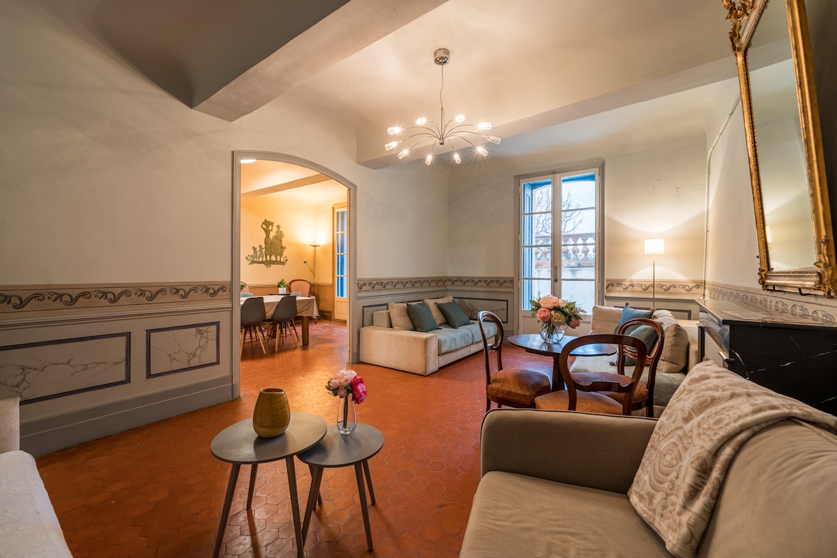 Exceptionnelle. Maison de 94m2 au centre ville. Joliment rénovée avec deux places de stationnements dans la cour et de 2 terrasses spacieuses de 20 m2 et de 40m2 Vous aurez le choix entre ombre et soleil avec possibilité de manger en extérieur (BBQ et Plancha). Chambres 1 avec 1 lit en 160x200, Chambres 2 avec 1 lit en 160x200, Chambre 3 avec 3 lits simples en 90x200, Salles d'eau 1 au RdC avec grande douche en 120cm. Salle d'eau 2 au 1er étage avec grande douche en 160cm. 2 WC (RdC et Etage).