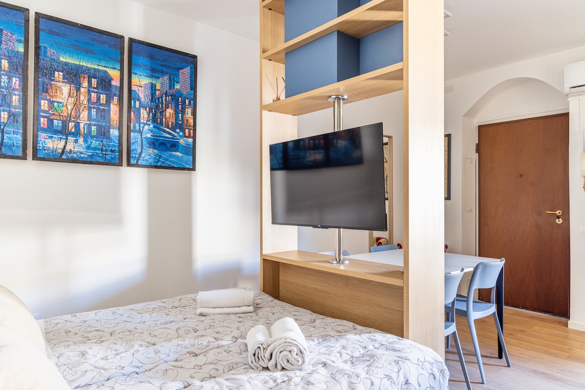 In the heart of the “Isola” district, that has lately become the centre of Milan nightlife, you will find this finely renovated studio apartment, on last floor of a building. It is reachable by lift and 2 flights of stairs. The studio is fully equipped with every comfort: Wi-Fi, washing/drying machine, Led TV, A/C, induction hob, microwave, dishwasher. walking distance of the 2-3-5 underground lines. . It’s ideal for business and to visit Milan, including the nightlife. CIR 015146-CNI-00398