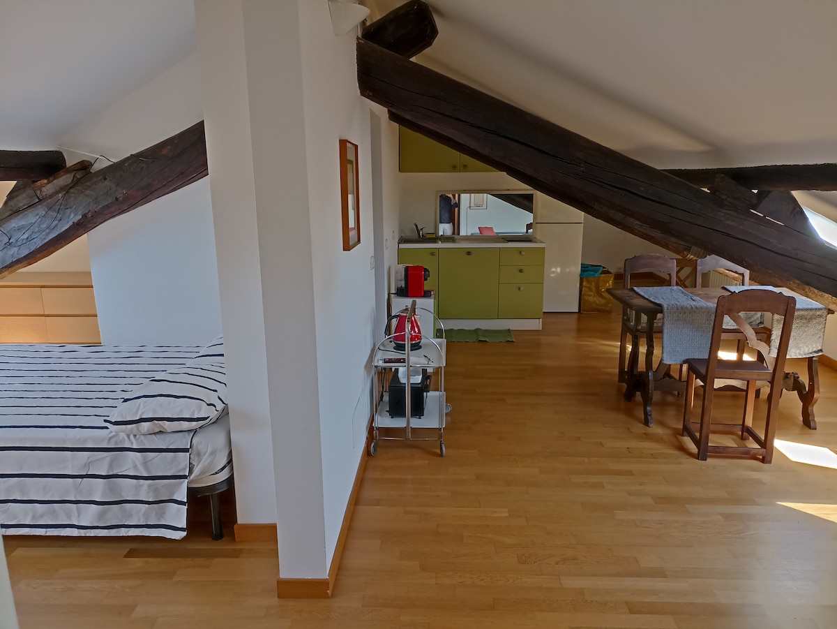 Fully refurbished, in a historical building, my home is a bright open-space attic, with a private bathroom, kitchen, double bed, a large sofa with a projector+home theatre system (Sonos), air-con (Daikin), and an office corner; It’s a quiet & bright penthouse despite being in the city's heart. It is just 2 minutes away from Cadorna station, which has subways, trams, buses, and the Malpensa Express train. It's an easy walk to the castle, the duomo, etc. You can be autonomous for check-in and out