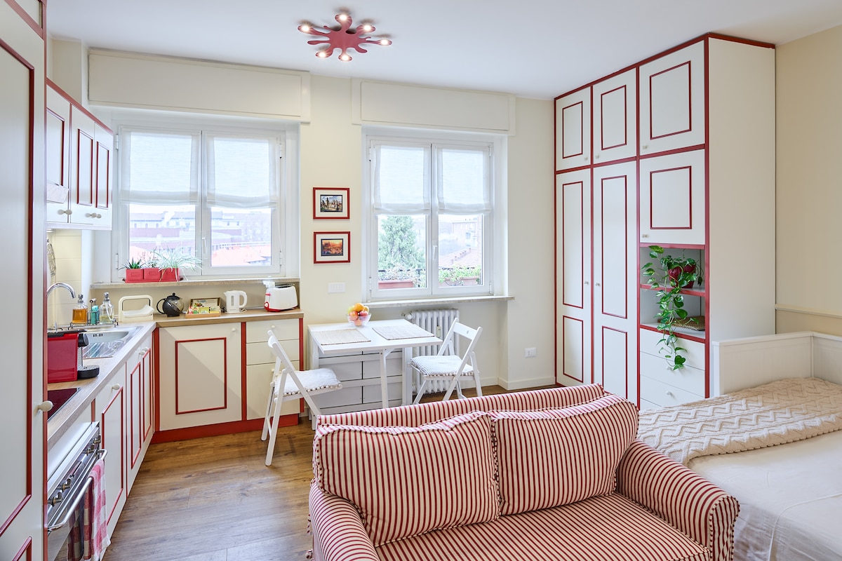 Fully refurbished, in a historical building, my home is a bright open-space attic, with a private bathroom, kitchen, double bed, a large sofa with a projector+home theatre system (Sonos), air-con (Daikin), and an office corner; It’s a quiet & bright penthouse despite being in the city's heart. It is just 2 minutes away from Cadorna station, which has subways, trams, buses, and the Malpensa Express train. It's an easy walk to the castle, the duomo, etc. You can be autonomous for check-in and out