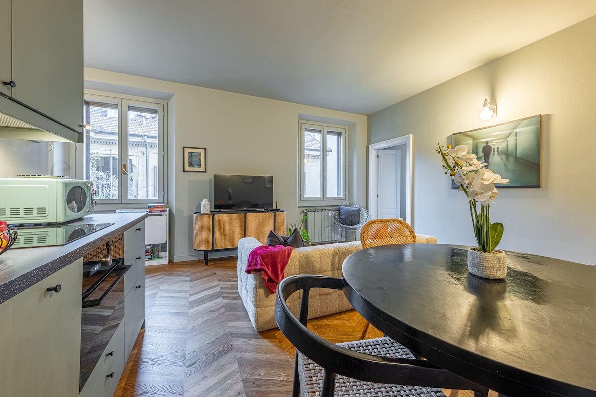 L'appartamento elegante e spazioso si trova in un palazzo signorile proprio accanto al quartier generale degli stilisti Dolce e Gabbana, sul cui giardino affaccia una delle due stanze da letto. Il quartiere è centrale e sofisticato, e la casa ne rispecchia l'unicità. E' stata ristrutturata con cura da un architetto, ogni stanza ha dettagli di stile, i 2 bagni e la cucina sono molto curati. Tutta la casa affaccia su cortili interni, quindi è molto silenziosa ed esclusiva. Custode ed ascensore.
