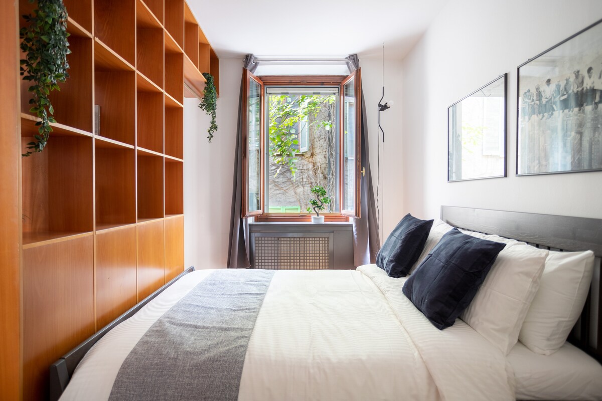 Enjoy a stylish experience at Leonardo's flat. Centrally-located, just a 10-minute walk from San Babila, Duomo, Central Station and the fashion district, this modernly furnished and bright one-bedroom apartment will let you feel at home in the heart of Milan. This flat is especially suited for couples and professionals, being just next to two metro stations, and having high-speed internet and two work stations. Bar, restaurants, shops, museums, supermarkets and a huge park are just downstairs.