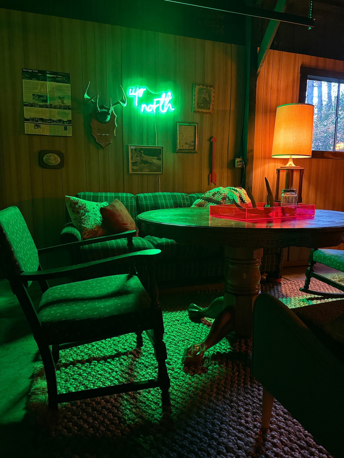 From the moment you arrive at the Tomorrow River Time Machine time immediately slows down. As you enter the cabin you are greeted by a warm glowing space that feels like a memory you haven’t lived yet. During the day you will ski, snowshoe in the expansive forest, or curl up with a good book. At night you will pop in a VHS, stargaze or laugh with friends in the heated game room as an 8 track plays in the background. Come enjoy the river, pond, & woods and feel a peace you’ve never felt before.