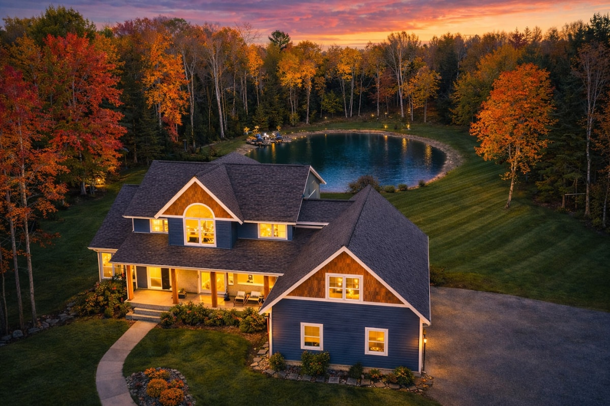 Located on 5 private wooded acres on McDill Pond, our cottage offers a peaceful escape where you can relax and restore. This luxurious home features 3 bedrooms with their own bathrooms, a spacious kitchen and dining area including a standing counter that doubles as a workspace, a sunporch with views of the pond, and gorgeous accents like custom chandelier and tilework. The primary bedroom is an experience all its own with vaulted ceiling, gas fireplace, walk-out deck, and stunning spa bathroom.