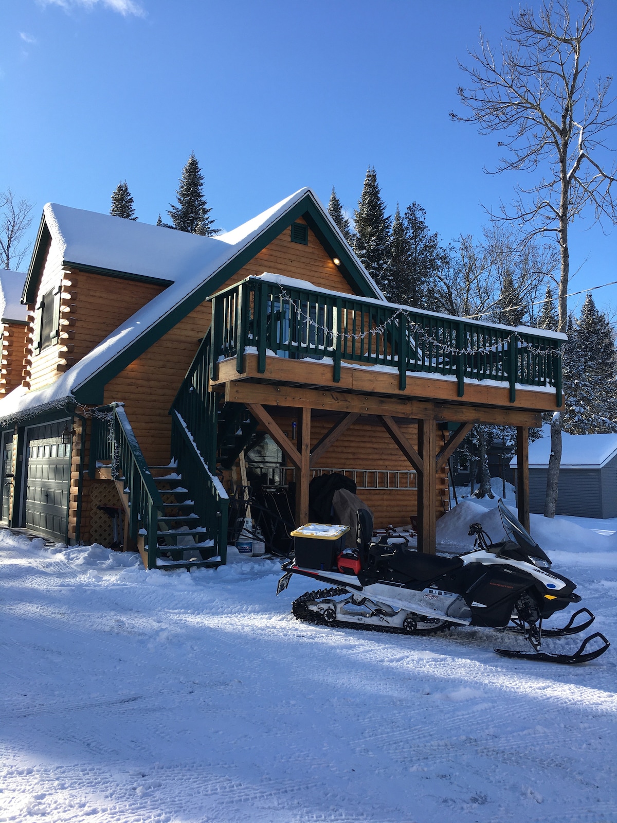 雪地摩托车道上的温馨湖畔小屋