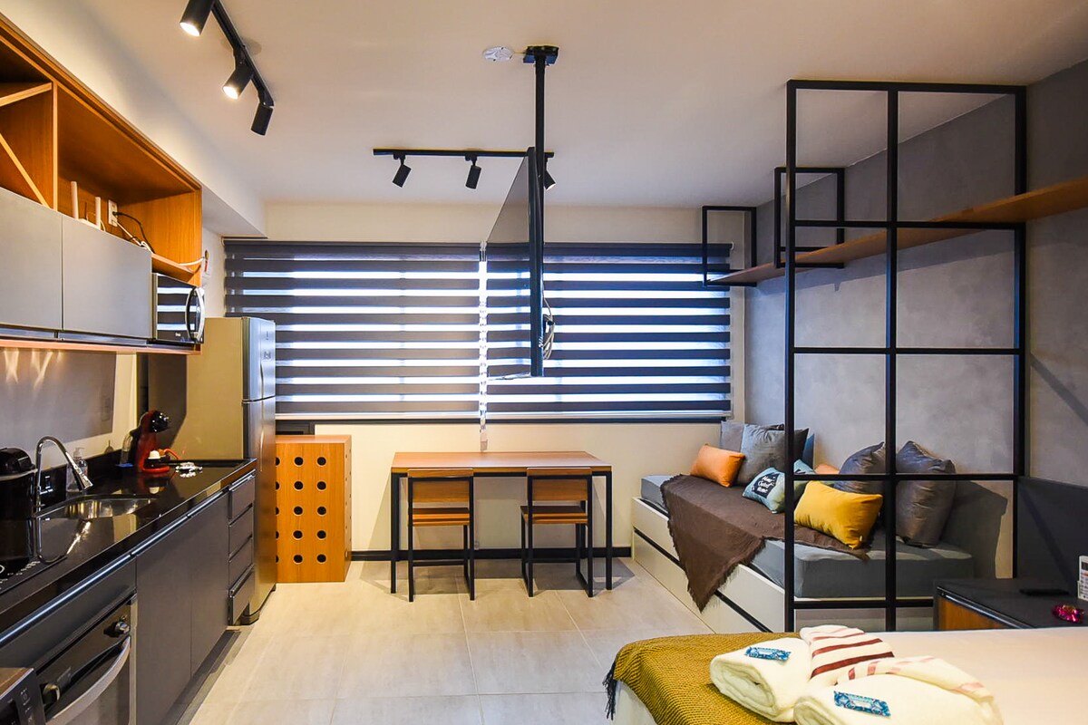 Welcome and make yourselves at home. The apartment is brand new, designed especially for you and has impeccable decor, very practical for everyday life. The view is spectacular! The apartment is on the 28th floor. We are in an excellent location in São Paulo, in the Pinheiros neighborhood, with restaurants, supermarkets and bakeries very close by. It's 40m2 (430 sqft) with 1 bedroom and 1 bathroom. Walking distance from Fradique Coutinho subway station (just 2 blocks).