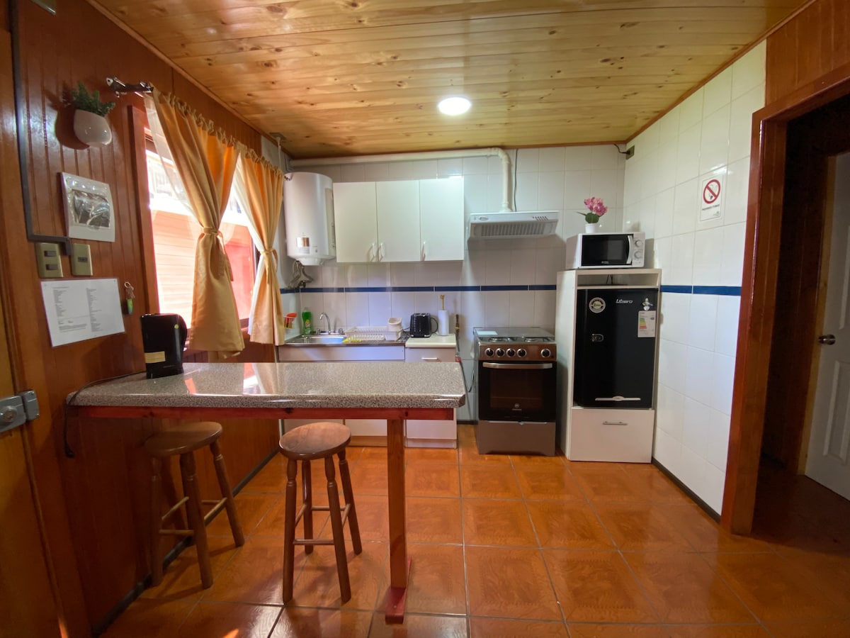 Te invitamos a disfrutar de la calidez y confort de nuestro alojamiento, el cual se encuentra cómodamente acondicionado para dos personas, a pasos de avenidas con relevancia comercial, supermercados, clínicas, lugares de esparcimiento , estadio, parques y plazas. Disponemos del siguiente equipamiento: Electrodomésticos y elementos de cocina básicos esenciales, Dormitorio totalmente equipado, toallas y otros. Ideal para Home Office. ¡Ven a disfrutar, te esperamos!