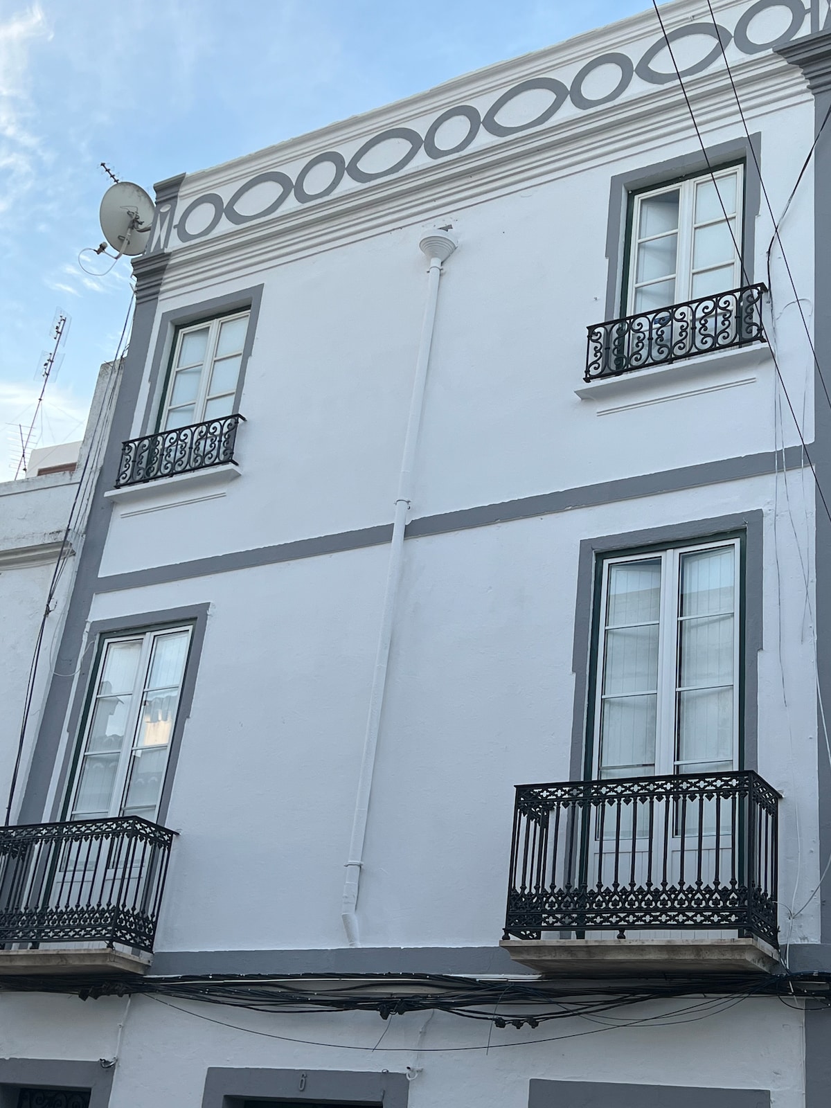Apartamento no centro da cidade recentemente remodelado com um alto padrão. Três quartos duplos e um individual. Casas de banho novas e cozinha nova totalmente equipada. Sala de jantar, sala de estar, tv satélite, wi-fi, toalhas, lençóis, sabonete e papel higiénico, café, leite, chá, pão, manteiga, gelo, ar condicionado e aquecimento. Com vista para a praça central - não poderia ser mais central.