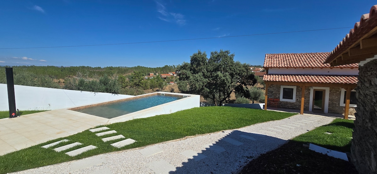 Connect with nature on an unforgettable getaway in a large and comfortable rural house in the heart of the Serra de São Mamede Natural Park. Just 5 minutes from Castelo de Vide, 15 minutes from Marvão castle and 10 minutes from the dam of Póvoa e Meadas, it enjoys an exceptional location. Magnificent ground floor house, with all amenities, with large swimming pool and outdoor leisure area equipped with dining table, sofas and outdoor fireplace, hammocks and rest bed and sun loungers.