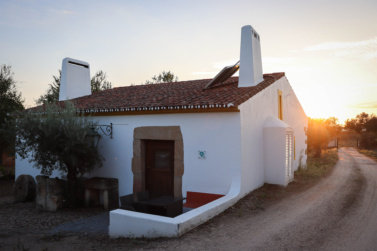 Quarto com cama de casal. A sua janela dá para um vasto campo alentejano, e onde todos os dias o pôr do sol saúda os convidados. A sala é acolhedora, ideal para quem quer ler, escrever, encontrar-se consigo próprio ou ter uma boa conversa. O sofá cama pode ser usado se solicitado. Dispõe de uma lareira confortável apetrechado de uma salamandra a lenha. Casa de banho privativa.