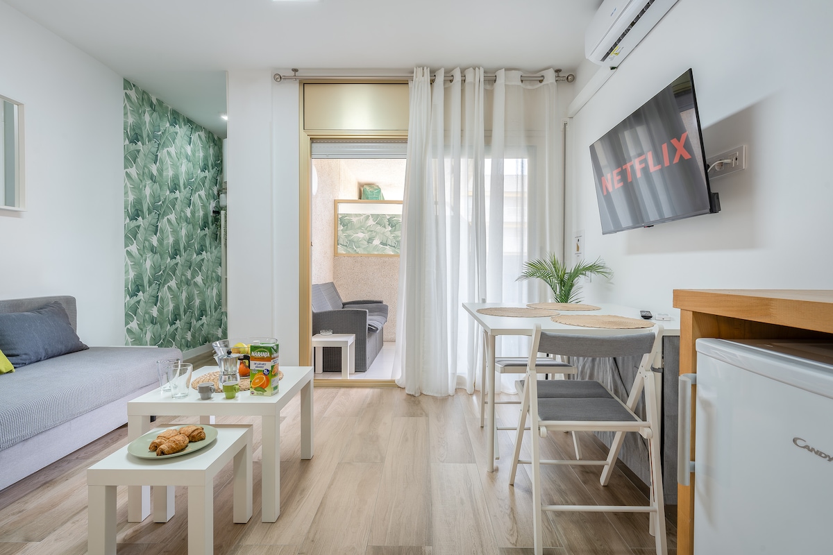 Estudio Formentor , es ideal para una pareja, con una capacidad máxima de 4 personas, el apartamento tiene una cocina, un cuarto de baño, salon con sofá cama y cama de matrimonio , balcón con muebles de jardín, el apartamento es muy limpia , con todo tipo de electrodomésticos , utensilios de cocina . Cuarto de baño con ducha y artículos de aseo . Hay conexión wi-fi gratuita , ubicada en el 4 piso con ascensor , hasta la playa Levante - 70 metros , hasta el parque de Port Aventura -1.3kl.