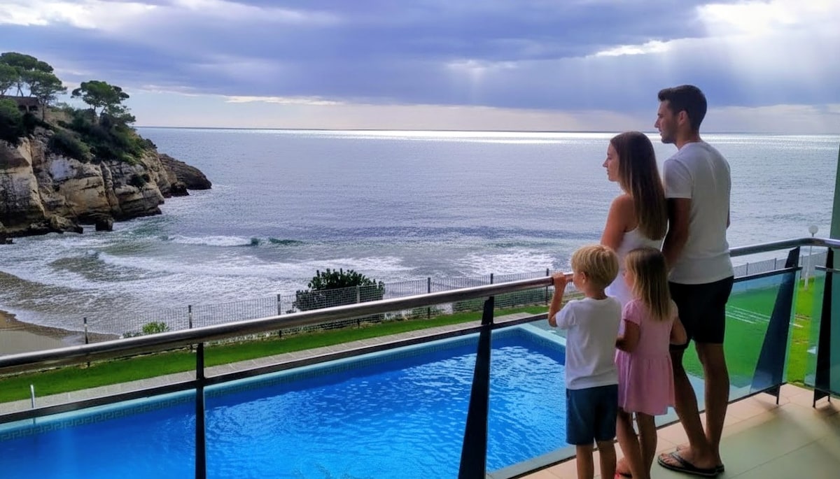 Beachfront apartment with direct access to one of the best coves on the Costa Dorada, swimming pool and covered parking. 2 bedrooms, 1 bathroom, independent kitchen, living room, terrace, elevator, wifi, satellite TV, Netflix, air conditioning. 10' from Port Aventura, Ferrari Land, 5' from Aquopolis, airports: 1h Barcelona/20' Reus. Idyllic place to spend your family vacation. July and August: arrivals and departures on Saturday