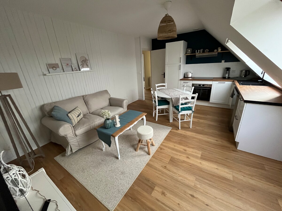 A 2 pas des commerces l'appartement de 41 m2 avec balcon est situé au 2em étage d'une résidence calme avec ascenseur. Il vous offre un espace de vie agréable et fonctionnel. Garez votre voiture et baladez vous en vélo le long des pistes cyclables. La plage est accessible en 10 min à vélo, elle vous invite à la détente et aux activités nautiques. Place de parking privative pour véhicule inférieur à 2m et local vélos commun à la résidence.