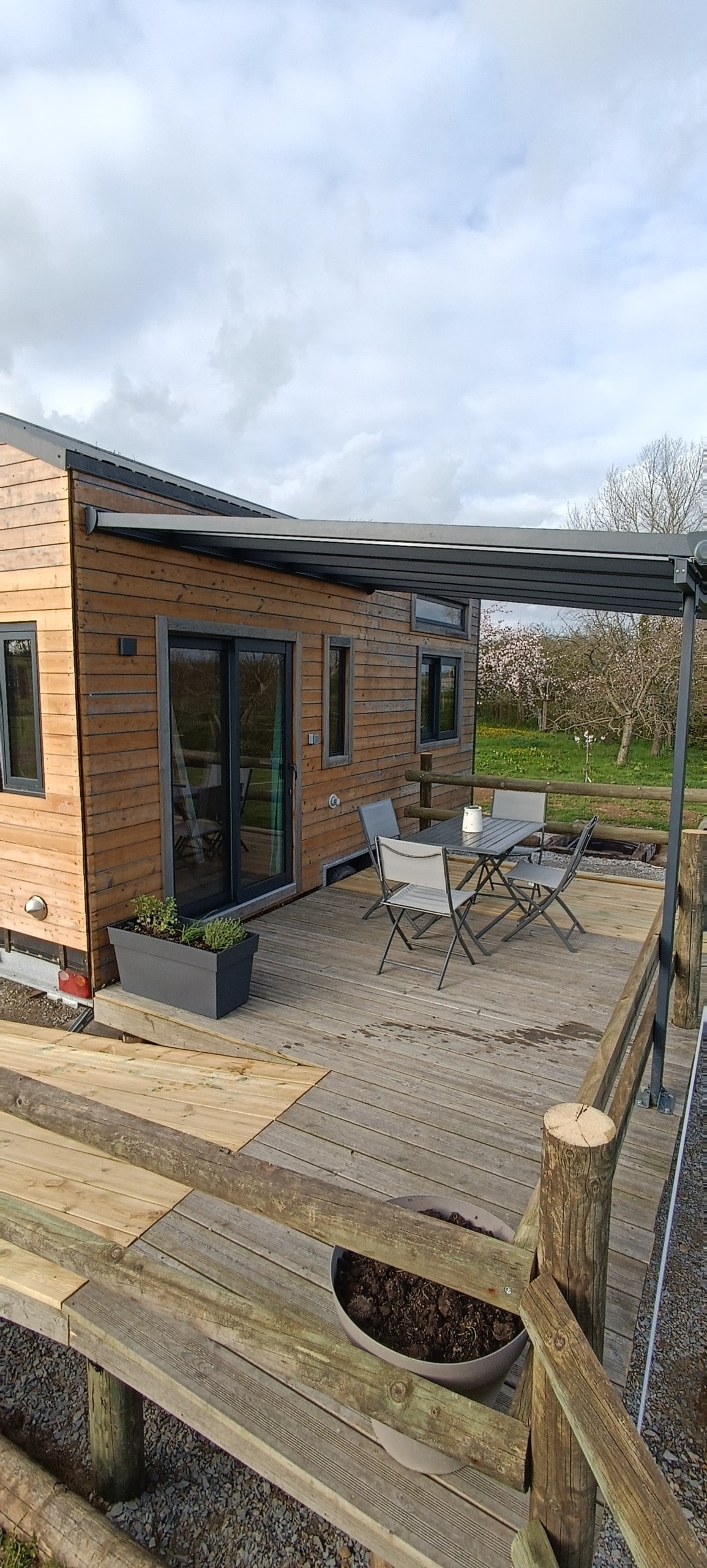 Évadez-vous au cœur de la nature dans notre charmante tiny house ! Réveillez vous avec une vue imprenable, bercé par le doux bruit des chevaux et des moutons. Notre tiny house, vous séduira par son ambiance chaleureuse et fonctionnelle. Elle dispose de tout le confort nécessaire pour un séjour inoubliable. Deux mezzanines accueillantes avec des lits confortables de 140 et 160 cm. Profitez de la terrasse en bois, d'une pergola pour prendre vos repas en plein air ou admirer le paysage.