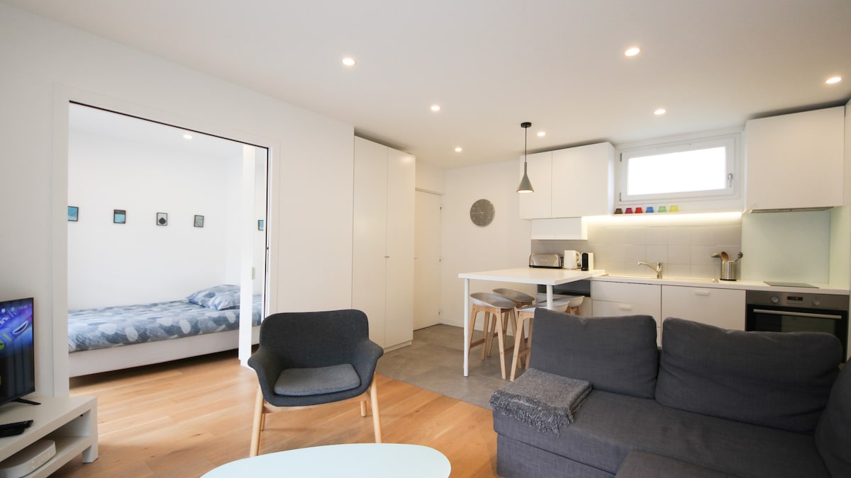 Ce studio a été pensé pour être résolument confortable, moderne et spacieux. Profitez de tous les éléments nécessaires pour passer un séjour agréable aux portes de Paris et à deux pas du métro vous permettant d'être à 10 minutes de la gare Montparnasse et 20 minutes des Champs-Elysées. De plus, l'isolation thermique et phonique complète vous permettra de vous sentir comme chez vous, dans un nid douillet !