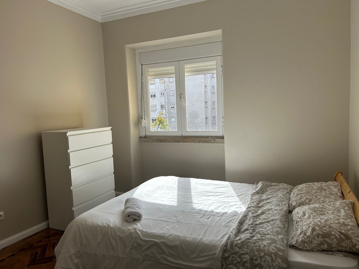 Apartment in the residential neighborhood, 10 minutes from Lisbon Airport by car, but no sounds from airplanes. Apartment fully furnished and equipped with one bedroom (double bed), two bathrooms, living room and well equipped kitchen. Quiet area with free parking spaces nearby. Close proximity to public transport, bakery’s, restaurants and supermarkets all walkable. 20 minutes walking to the beautiful river view of Parque das Nações. 25 minutes with Uber, around ( 8-10EUR) to city center.