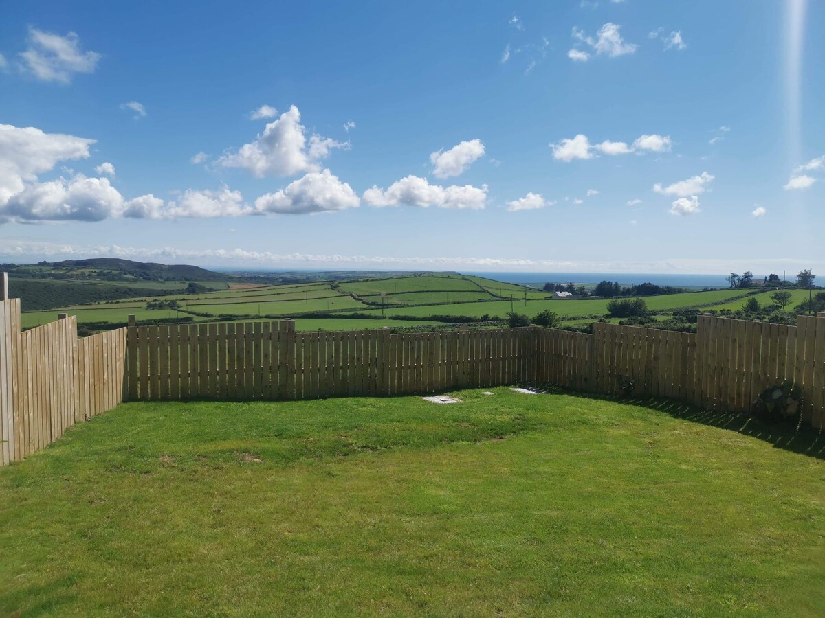 Set on a family farm, the cabin is a peaceful luxurious retreat with spectacular views of Snowdonia and Cardigan Bay. Cattle graze in open pastures all around. The faint sound of the stream running in the distance that you can wonder down to through the ancient woodland. Enjoy views from Snowdon down the Welsh coast from a king size bed. The warm glow from the fire flickering on the pillow. The large rainfall shower and warmth underfoot from underfloor heating perfect on a cold evening.