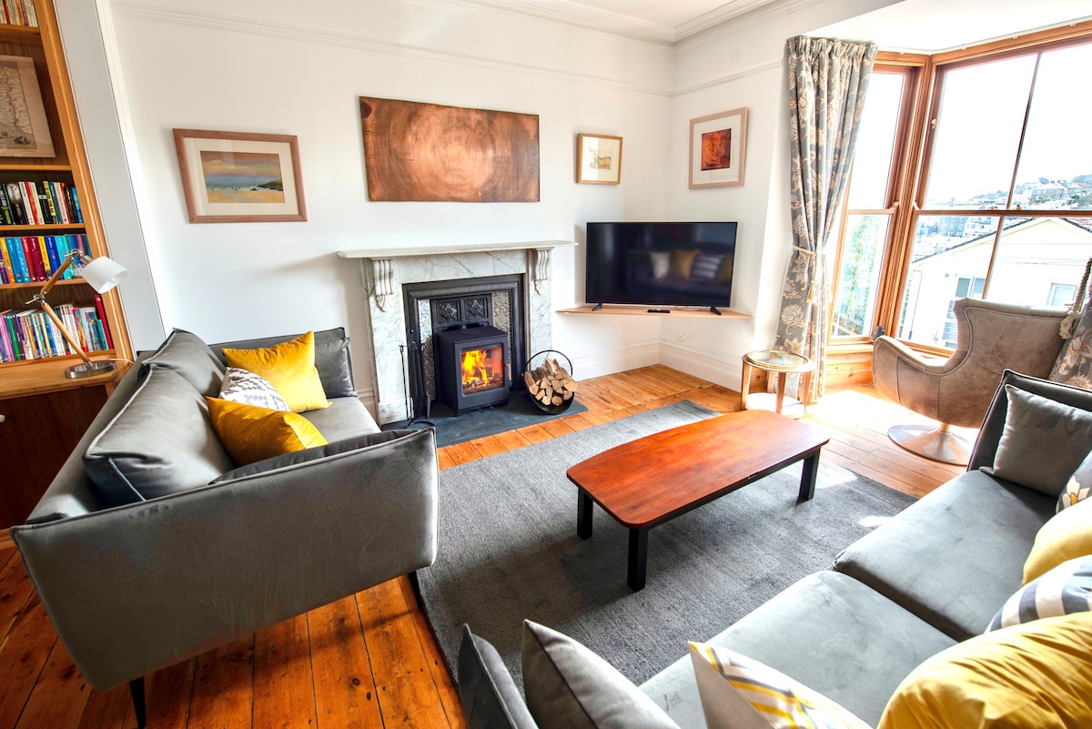 Beautiful Victorian house with stunning views, 2 minutes stroll to harbour and beaches. Private parking in front of the house and EV charger. Making Waves has a spacious interior and sunny patio. Original features/handmade furniture give real character. Situated on a quiet private lane with no thru traffic above tropical gardens/Hepworth Museum. Place a pin on your perfect location to base yourself in St. Ives and we believe you’d choose here - and this had been our home until 2022, so we know!