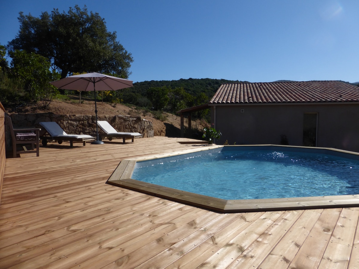 Villa paisible au milieu du maquis pour un séjour détente en famille ou entre amis. La villa est à 10 minutes à pieds de la plage d'Agosta, et à proximité des marchés et restaurant, tout en étant localisée dans le maquis, séparée des routes et du monde. Dotée d'une grande terrasse surélevée et d'une piscine, ce logement polyvalent vous laissera le choix entre le confort paisible à la villa, et les nombreuses activités aux alentours