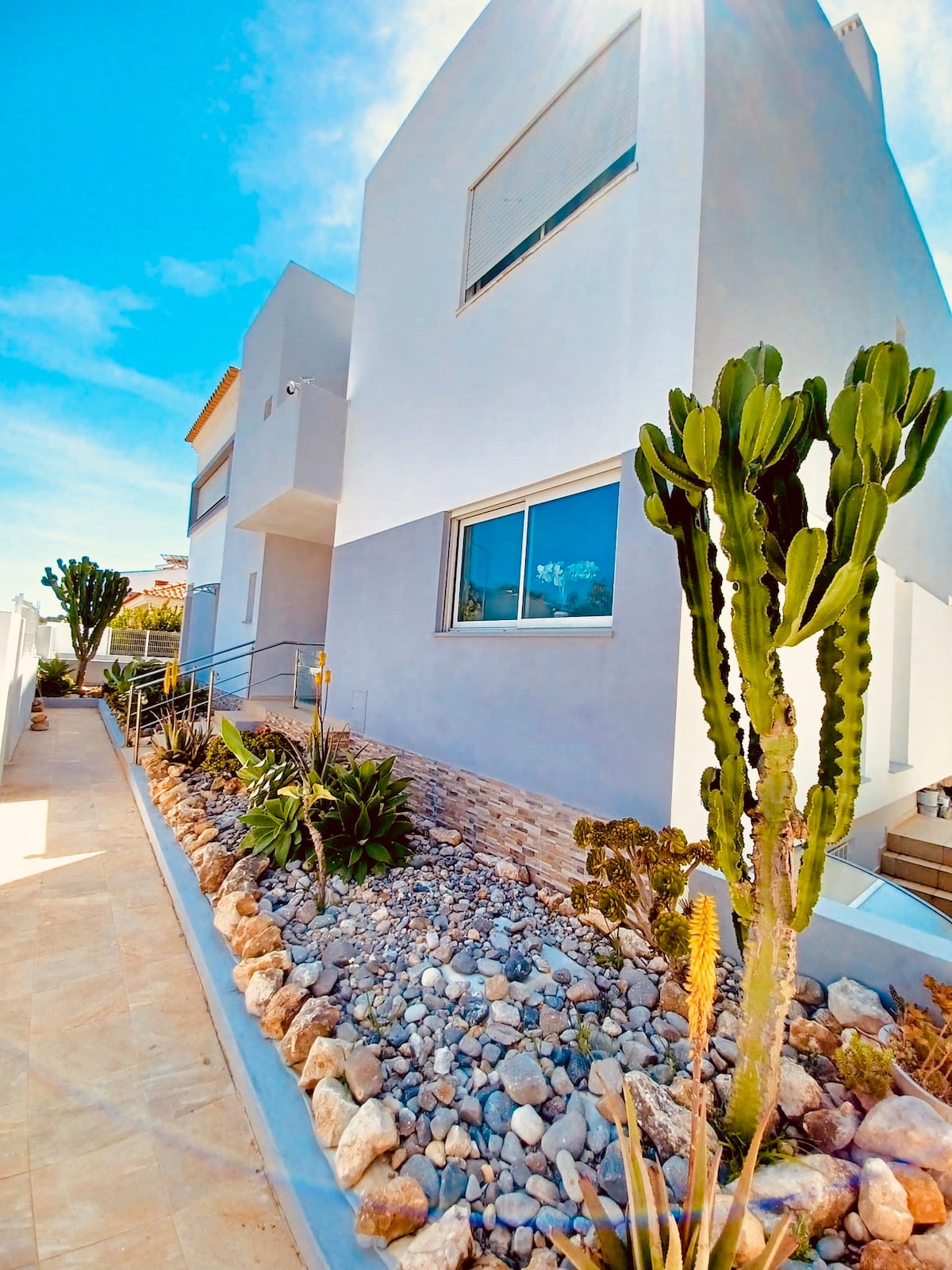 Quietly located by the lawn in a charming village with breathtaking views, the house is a 3 minute stroll from the gorgeous beach (with private direct access through lift). It has all the amenities needed for a great stay, including nearby supermarkets & 3 pools. We use this house for our family holidays, so it is well kept & equipped. We are in a peaceful area with plenty to do nearby. Close by you will find restaurants, bars and nightclubs, child activities, golf, tennis and water sports.