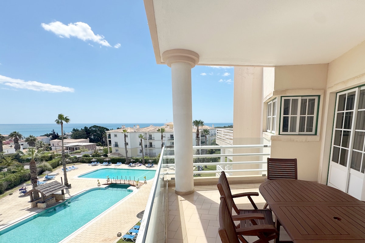 Brand New air-conditioned apartment with a splendid balcony with ocean and city view from the 7th floor - it's located centrally in the beautiful Praia da Rocha. It has a car parking space in the garage & outdoor pool for your usage! The apartment has 1 bedroom with a Queen Size Bed, a Wardrobe and a TV. A living room with a sofa-bed, a SmartTV and a dining area. Also a full equipped kitchen w/ washing machine. 100mts to the Beach, Restaurants & Supermarkets! Has Fast Wi-Fi (120Mbps)!