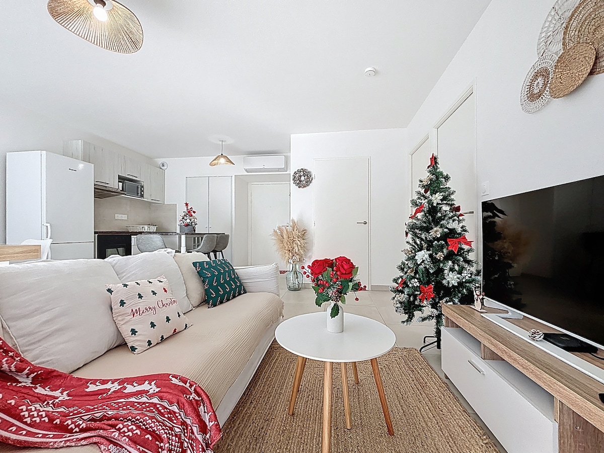F3 confortable – 6 couchages, Wi-Fi & TV Appartement fonctionnel idéal pour familles ou groupes. Il comprend : 1 chambre avec lit double (160x200) 1 chambre avec lit superposé 1 canapé-lit (140x190) dans le salon Salle de douche, WC séparés Cuisine équipée : micro-ondes, plaques vitrocéramique, hotte, cafetière Senseo, grille-pain, bouilloire, frigo. climatisation TV et Wi-Fi gratuits Parfait pour un séjour pratique et agréable !