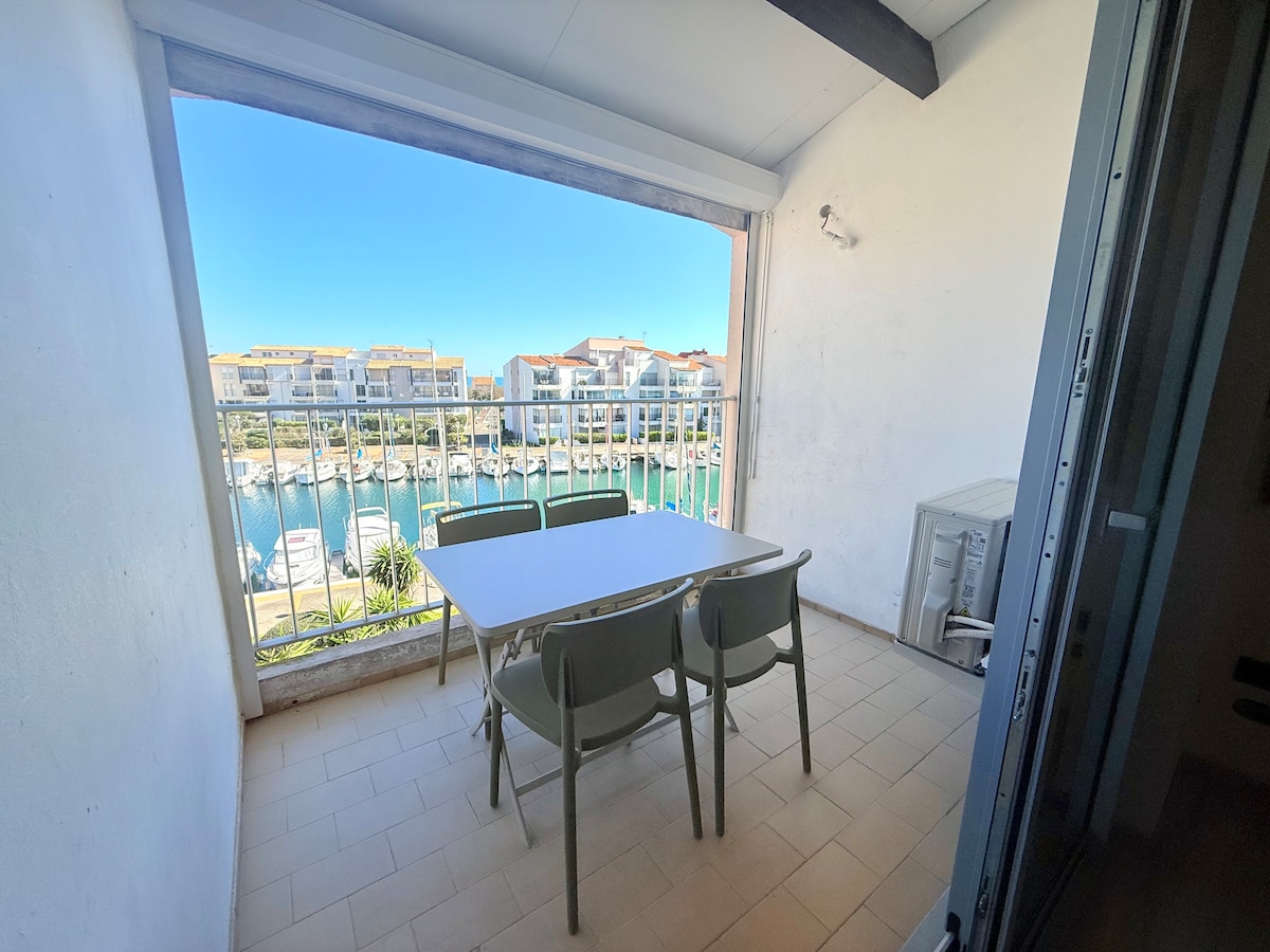 超棒的T2中心港口公寓,可欣赏Cap d'Agde的海景