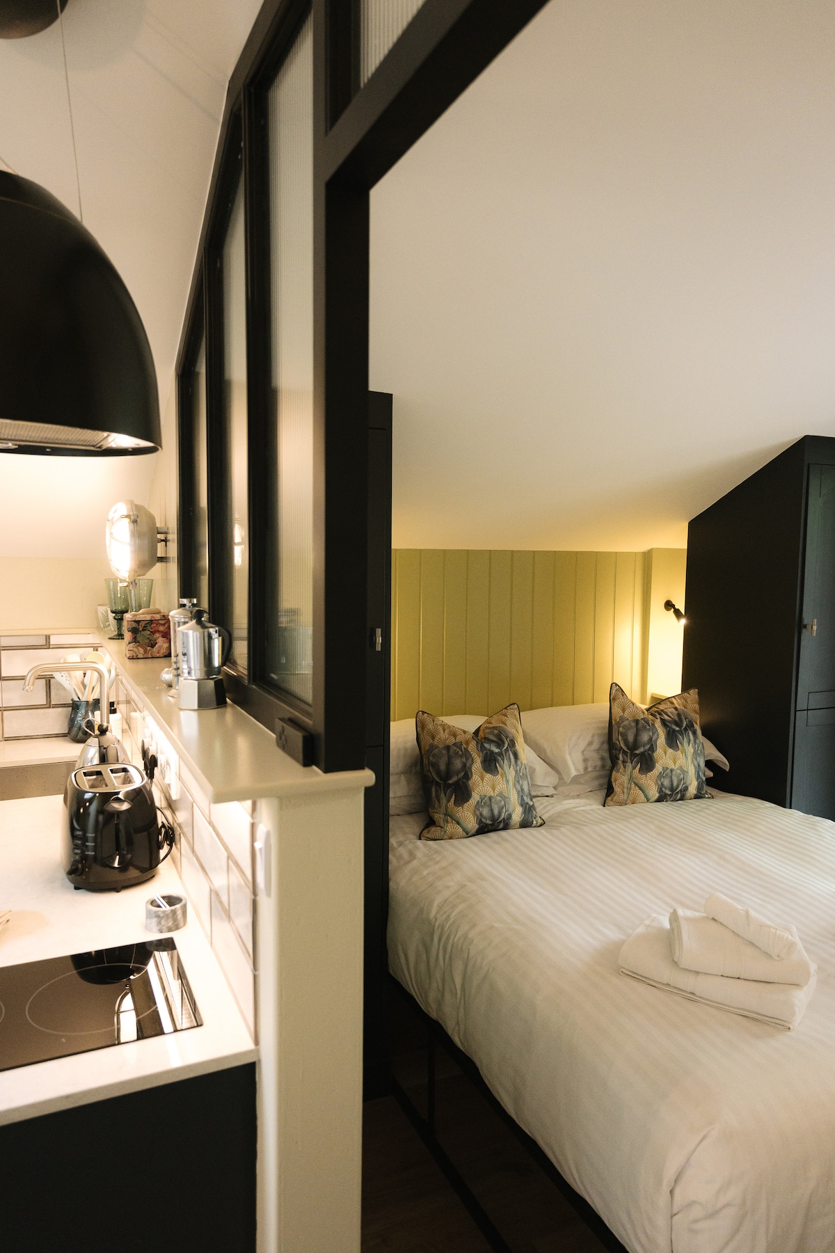 We recently transformed our large, 70 sq. meter, double garage into a stylish, open plan studio apartment with bleached oak, hardwood floor. It is a fantastic, light, and relaxing space with 3-meter bifold doors with integrated blinds that fully open out onto a shared courtyard with our house. There are large electric Velux sky lights with blackout blinds. It is a fantastic light space to relax or work. It has its own private access from the street.