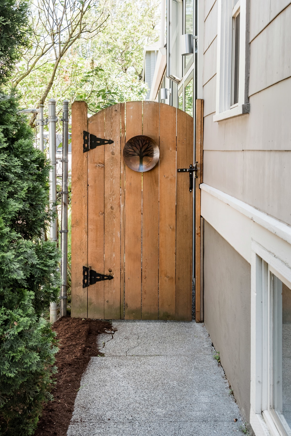 Enjoy private access to a bedroom and living room tastefully furnished featuring: A very comfortable pull-out couch; A brand new bathroom with shower and heated towel rack; A front-loading washer and dryer; Dishes, fridge, sink, coffee maker, microwave, ample counter space and a small dining table; Private WiFi network. We've put a lot of love into making this place beautiful and comfortable. See our five star reviews! Late check-ins can be easily accommodated with a passcode door lock. We’d love you to make our studio your home base. Bring the family. Your comfy pull-out couch sleeps two more. Want a light snack between restaurants? Walk a few blocks to our local New Seasons grocery store. Use your kitchenette with fridge, microwave, coffee maker, sink, dishes and wood countertops. Recharge your travel wear with front loading European washer/dryer. Pack light. Hair dryer, ironing board, towels for the shower... even umbrellas are all close at hand. With a private entrance, street parking and digital lock, the space is yours for your visit. We enjoy our backyard, especially in the summer, and you're welcome to join the fun. We love to share our favorite restaurants, parks and hikes if you're looking for suggestions. This sought-after district is home to dozens of restaurants and brew pubs within walking distance, while there's a Bike Town bike share station one block away for getting around town. The local New Seasons grocery store is a few blocks away. Street parking Bike Town bike share station one block away Everybody's Bike Rental 1/2 mile away Uber, Lyft and cabs always within minutes GetAround, Car2Go, Reach Now and Zip Car TriMet bus stops close by Modern architecture and design make it easy to clear your mind and enjoy the Portland experience. Green design includes an open transom between bedroom and living room.