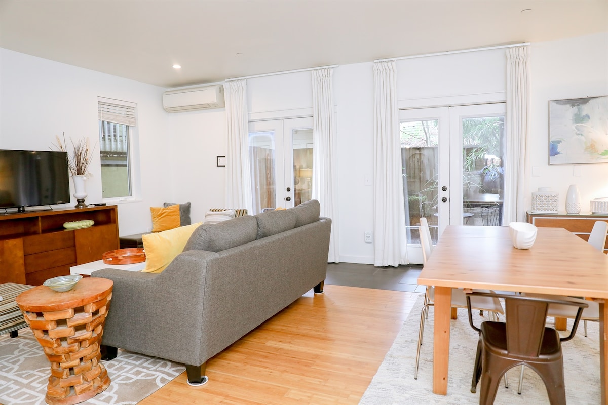 Your own beautiful 2 bedroom 1 bath (700 sqft) on quiet street in bustling downtown Beaverton. Washer/dryer in unit with 2 off street parking spots and lots of street parking. Granite countertops, hardwood and new tile floors throughout. Private backyard. Walking distance to restaurants, bars, shopping, library, Sat. Market etc. and 12 minute walk (.6 miles) to Beaverton Transit Center MAX station (direct to downtown Portland). There are 2 queen beds, one in each bdrm. The couch also folds down.