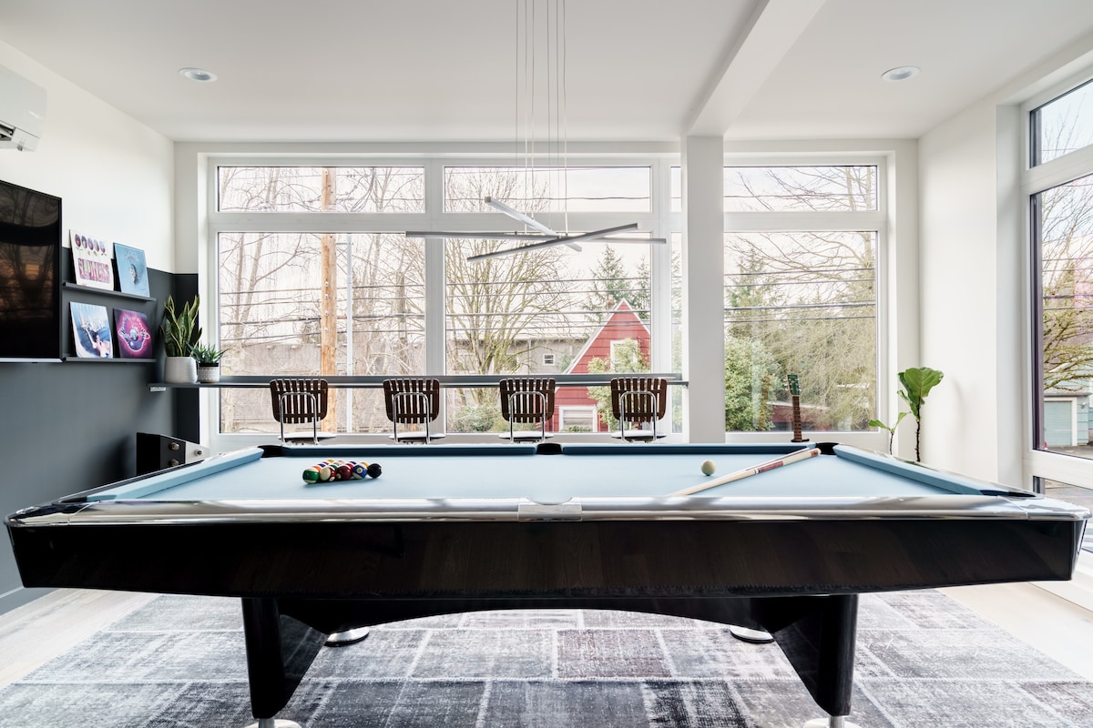 FUN GETAWAY FOR FAMILY, FRIENDS OR COUPLES IN CENTRAL LOCATION!!! Beautiful, boutique home with high-end finishings, designed for entertaining. BBQ, shuffleboard, arcade & boardgames. CENTRAL LOCATION! 1 mile from the Alberta Arts District with incredible restaurants, art galleries, shopping, and nightlife. Close to Mississippi Street (1.5 miles) and Downtown Portland (3 miles). Easy access to grocery stores, bike rentals, the Moda Center, and the airport — truly close to everything.
