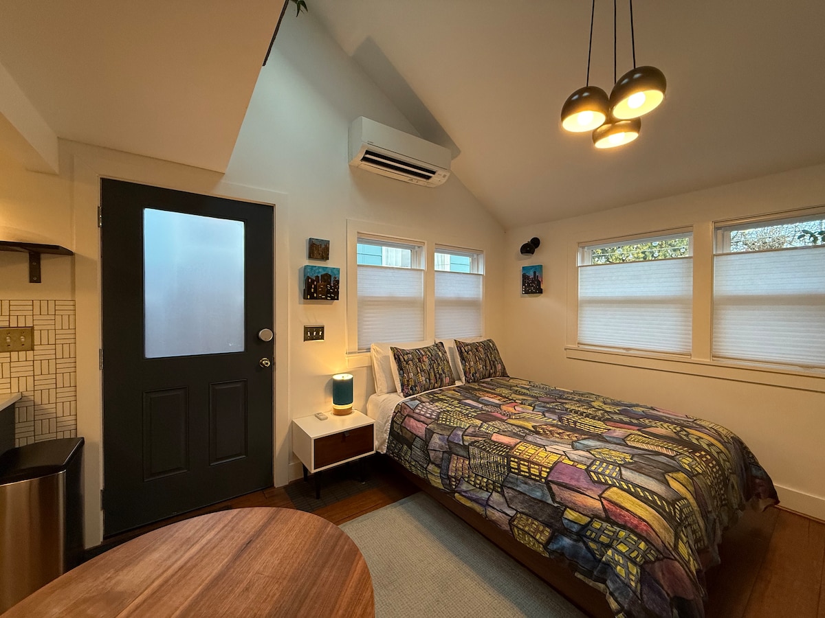 Guest Testimonial: “If I could give this place 6 stars I would. I literally wanted to move in.” “Our favorite Airbnb ever. Very clean. Great location in an awesome neighborhood.” The Nest is nestled in N Portland, 15 minutes from downtown and 15 minutes from the airport. The space is a cozy 512SF studio with beautiful open floor plan, full kitchen and laundry. Solar powered home with 40amp EV charger. Walking distance to Portland’s famous food and historic districts. All are welcome here.