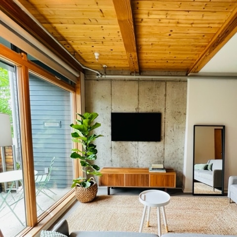 2 Bed, 2.5 Bath Alberta Arts Townhome. Enjoy this stunning townhome built in 2015. Contemporary cutting-edge design worthy of Dwell magazine. Located in Portland's popular Alberta Arts District - over 20 blocks of restaurants, bars, cafes, galleries, boutiques and Alberta Rose Theater. -Hardwood floors -Chef's kitchen w/ basic pantry supplies available. -Roll-up garage door off kitchen to balcony bring's the outside in!
