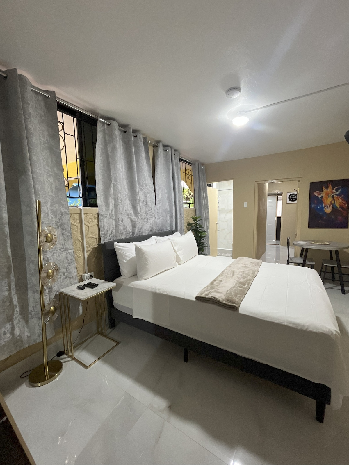 W22 Urban Retreat offers a modern, comfortable stay in the heart of Kingston 6 - perfect for business, leisure & long stays. This open-concept 1-bedroom is designed for comfort & convenience. Enjoy the bright & airy living space, dedicated dining area, & powder room. The fully equipped kitchen allows for easy meal preparation, in-unit laundry provide all the comforts of home. Step out onto the balcony to savor the view or relax in a comfortable queen-sized bed with spacious walk-in closet.