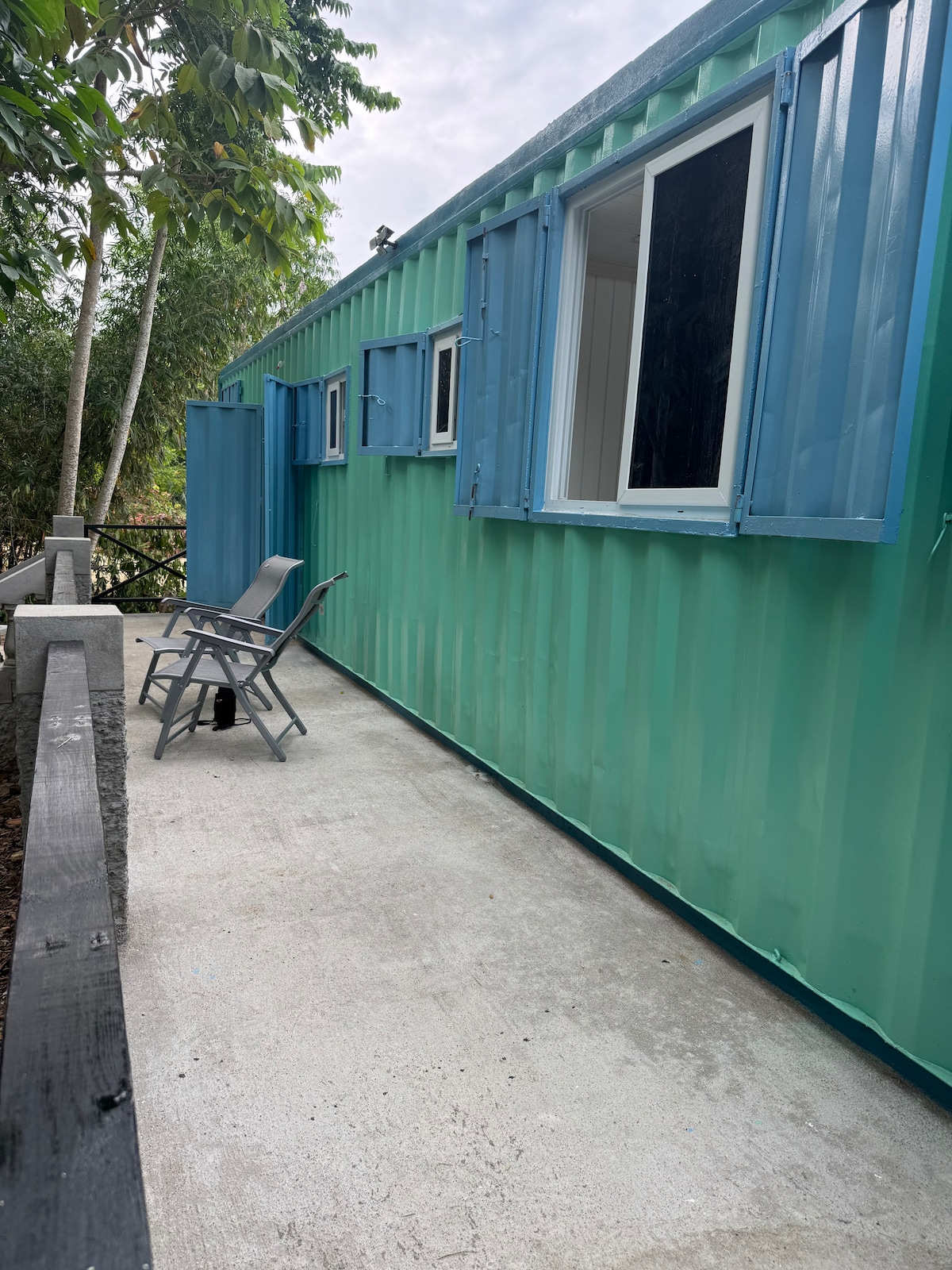 Enjoy the sounds of nature when you stay in this unique Rivers Edge Retreat. Tucked along the Reach riverbank and shaded by bamboo, this one-of-a-kind container stay is where rustic nature and modern comfort meet. The container has been reimagined into a bright, airy space with cozy beds, AC, a private bathroom, kitchen and large windows that frame the greenery outside. Step onto your patio and you’ll hear the sound of the river flowing just a few feet away — your own soundtrack for unwinding.
