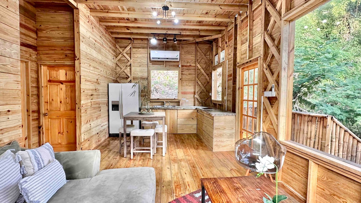 Nestled in Jamaica's Blue Mountains, this 2-bedroom wood cabin offers seclusion and comfort. Powered by solar panels, it features air conditioning and sits off-grid. Surrounded by serene bamboo groves, it boasts a private river with a cascading waterfall, creating a tranquil oasis. Wake up to the soothing sounds of nature and panoramic mountain views from your bedroom. Awaiting you is a sustainable retreat where you can disconnect and rejuvenate amidst breathtaking natural beauty.