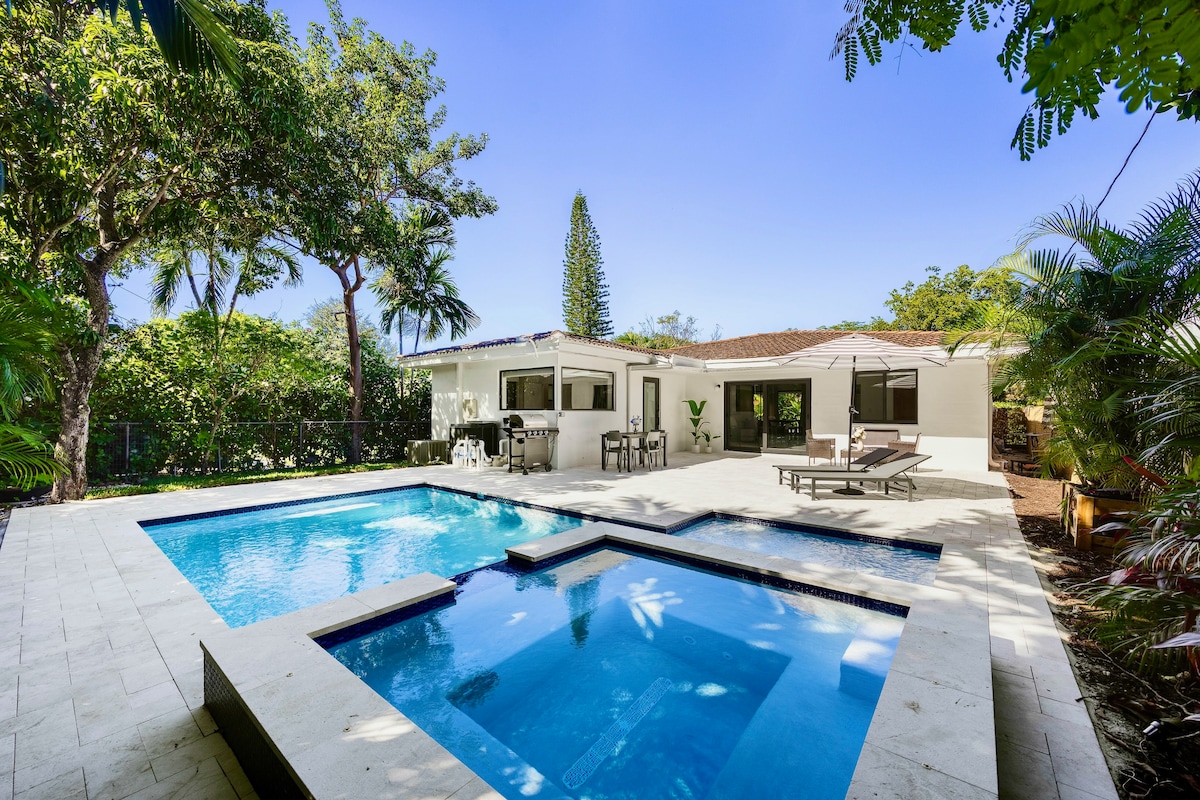 Relax and tan by the pool and hot tub, grill with your family and friends. This centrally located, luxurious 3 bed/3 bath house comfortably sleeps 10 people. It was completely remodeled, comes with a fully equipped kitchen, living room and indoor/outdoor dining area. Within 3-15min Drive: Brickell, Downtown, Key Biscayne, South Beach, Airport (MIA), Little Havana, Wynwood, Design District, Coconut Grove.