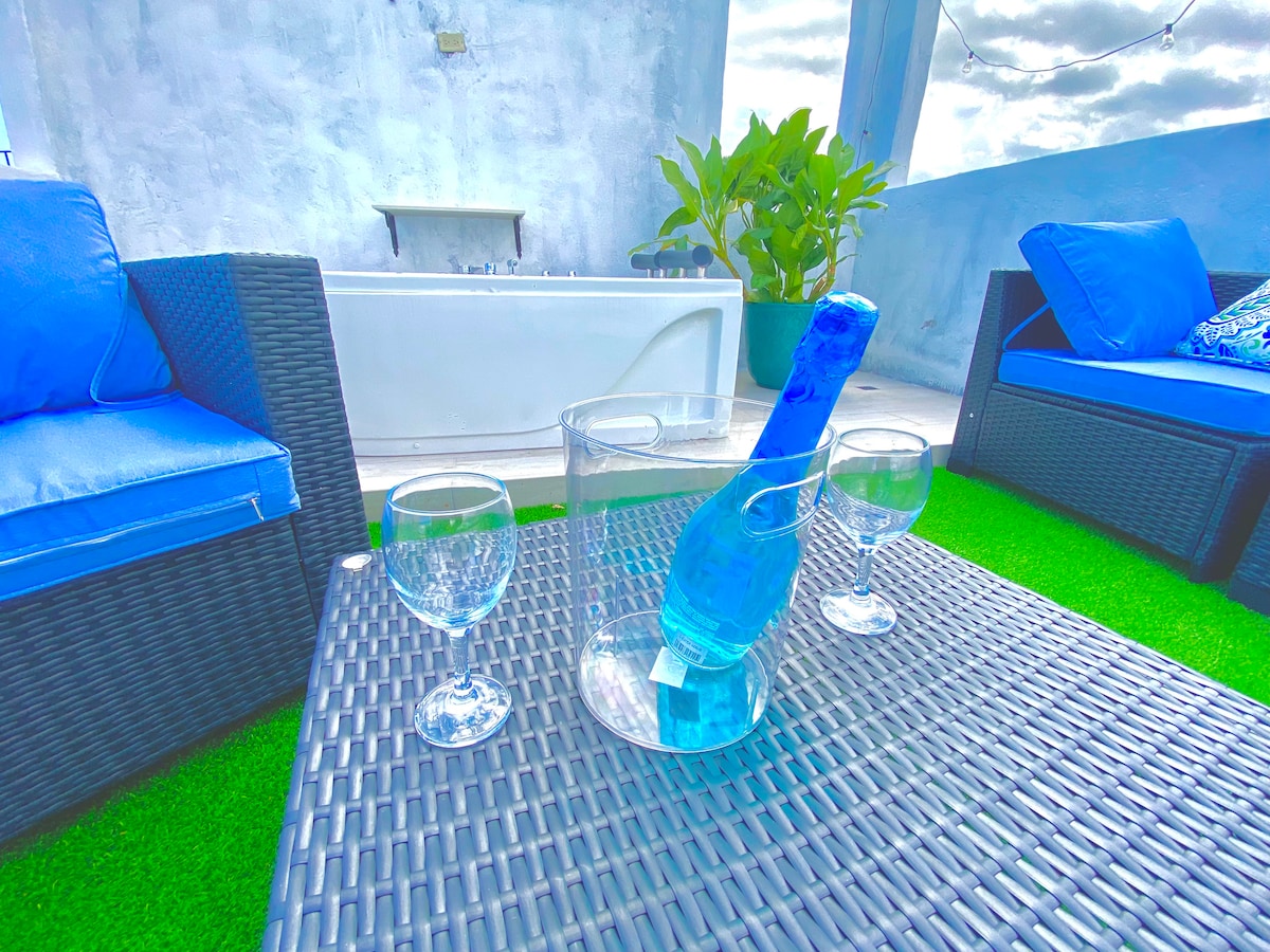 Experience luxury in this split-level loft with 3 bedrooms and 3.5 bathrooms. The private master suite offers a spa-inspired shower, jacuzzi, and romantic LED ceiling lights. Step onto the rooftop terrace, perfect for BBQs, bridal showers, or enjoying New Year’s fireworks. With premium stainless steel appliances, a washer, dryer, and dishwasher, this elegant loft combines modern convenience with comfort, creating a stylish and relaxing retreat for guests who value quality.