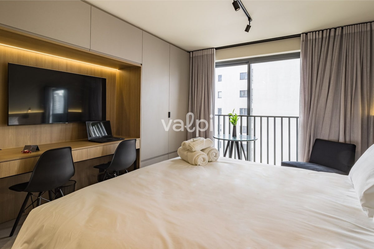 Brand new studio 40sqm in TREND 24, free parking space, beautiful panoramic view (13th floor), airy, lit by the morning sun, condominium with complete infrastructure, concierge 24h, gym, 20m heated pool. VIVAR beds with chest, space to work with laptop, hot and cold air-conditioning 24,000, Smart TV 42, cable TV NET with 155 channels, Wi-Fi 120 mbps, barbecue pit, wash and dryer machine, iron, hair dryer, microwave, token, electronic lock.