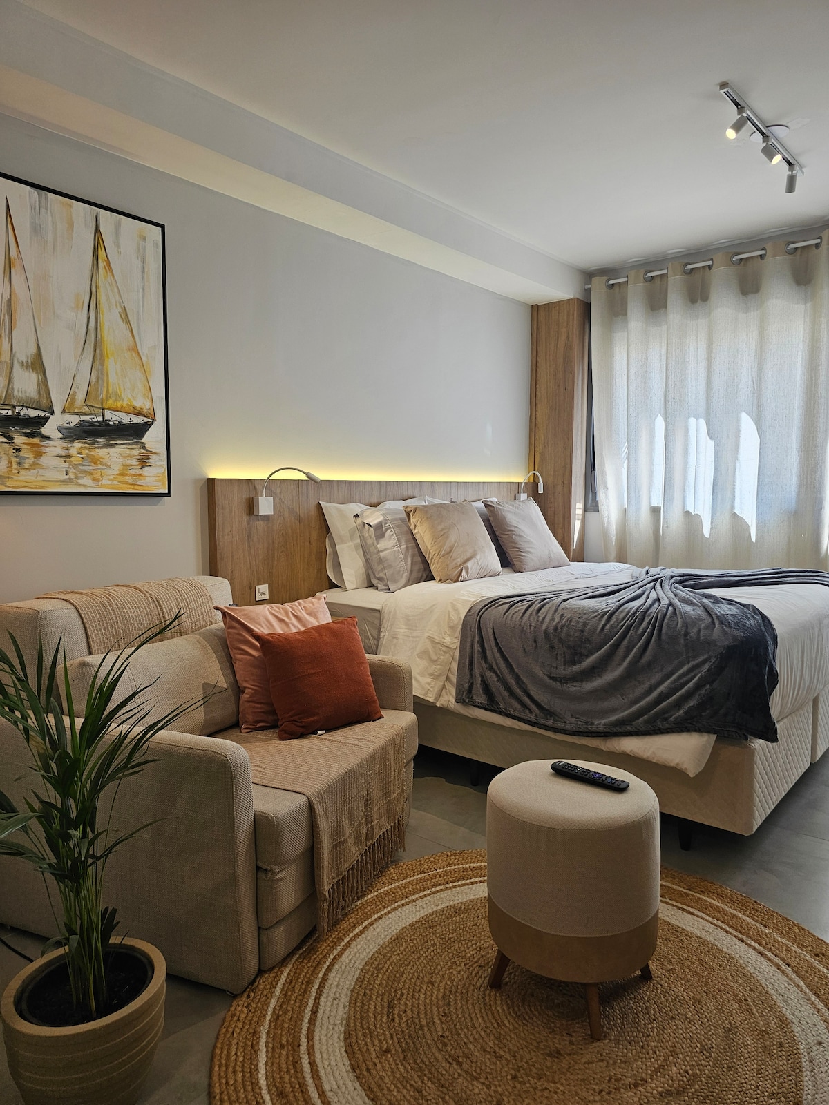 Viva uma experiência única neste estúdio acolhedor e elegante, projetado com atenção aos detalhes para oferecer conforto, funcionalidade e muito estilo. O ap azul planejado é um diferencial exclusivo, com iluminação suave e decoração pensada para relaxar, móvel inteligente e versátil que se transforma em mesa de jantar ou apoio para cozinhar — perfeito para quem valoriza funcionalidade. Piano digital disponível para relaxar, praticar ou se inspirar. Smart TV, Wi-Fi.