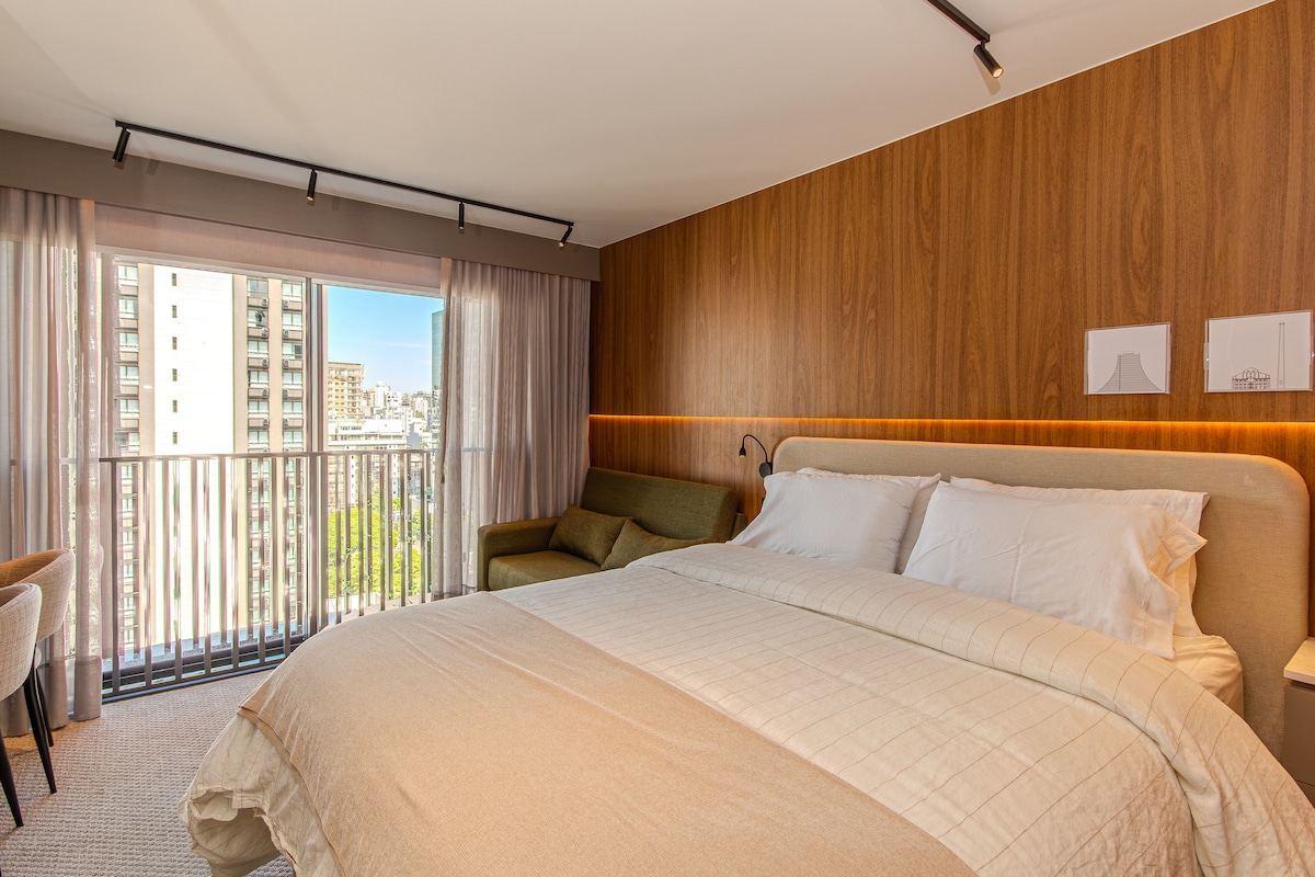 Seja bem-vindo a um lugar que combina conforto, estilo e praticidade em uma das melhores regiões da cidade. Ideal para quem busca um local cercado por excelentes restaurantes, cafeterias charmosas e bares animados, tudo a poucos passos de distância. ✨ O apartamento é moderno, acolhedor e pensado para proporcionar bem-estar, perfeito tanto para estadias curtas quanto longas. Aqui, você encontra um ambiente tranquilo para relaxar após um dia intenso ou para trabalhar com conforto e inspiração.