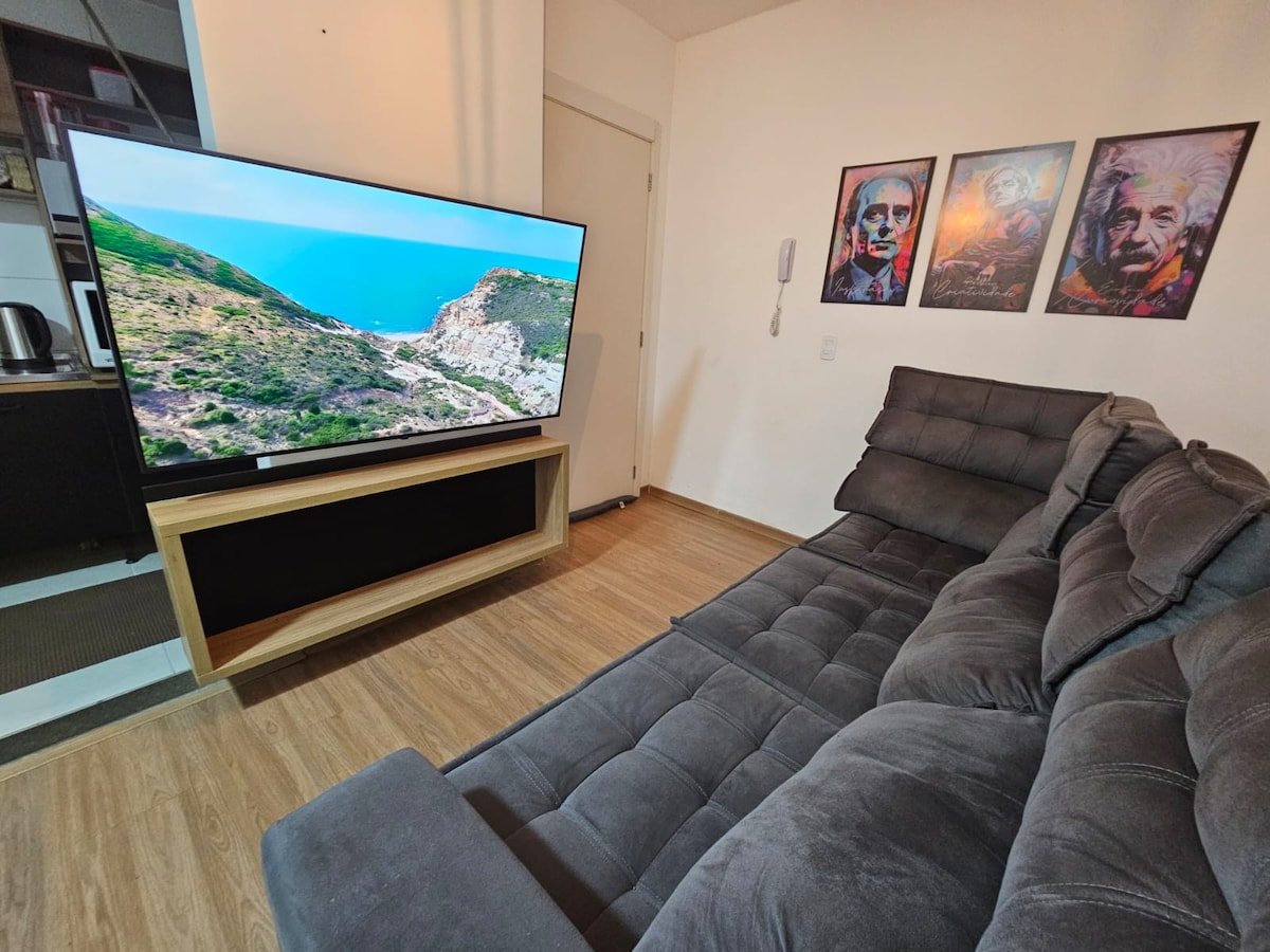 Awarded 70m2 LOFT in one of the most conceptual buildings in design in Porto Alegre, 8 minutes from the Iguatemi shopping mall. Decor inspired in Brooklyn 60's , NYC, fully furnished and ULTRA equipped, with ambient sound via amazon Alexa & various voice-controlled lighting scenarios, ultra fast fiber optic Internet (600mbps), work-station space, full kitchen, hydro for 2 people and a large infra. An experience for demanding people who seek to be surprised.