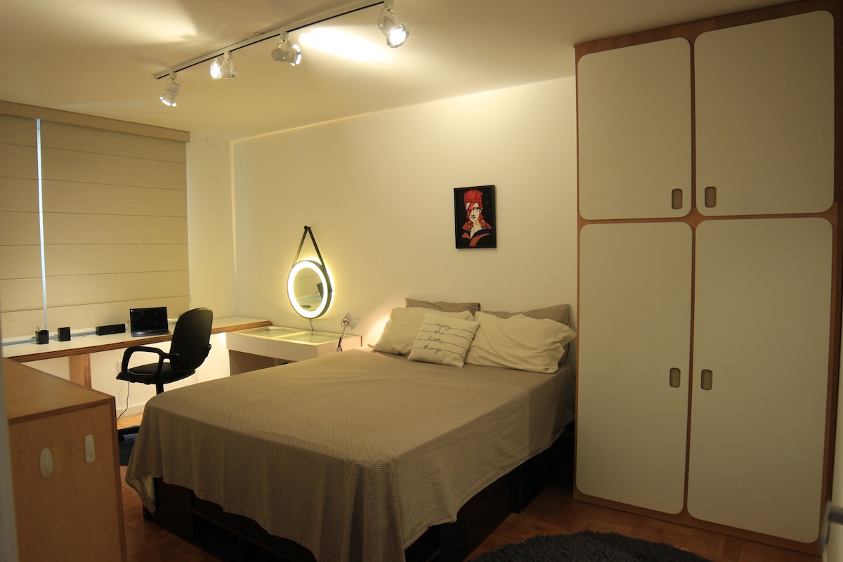 More em frente à Redenção com uma Superhost! Divida o apartamento somente com mulheres. Preparado para médias e longas estadias. Av. José Bonifácio, em frente ao Brique, próximo a UFRGS, Clínicas, pontos de ônibus, supermercados, bares e ótimos restaurantes. QUARTO 16m2: cama queen, roupas de cama e banho, desk de trabalho, ar-cond, wifi. ÁREAS COMUNS . Cozinha grande e completa, com churrasqueira . Banheiro completo . Sala completa OUTRAS INFOS 5º andar, elevador, vista para o Morro Santana.