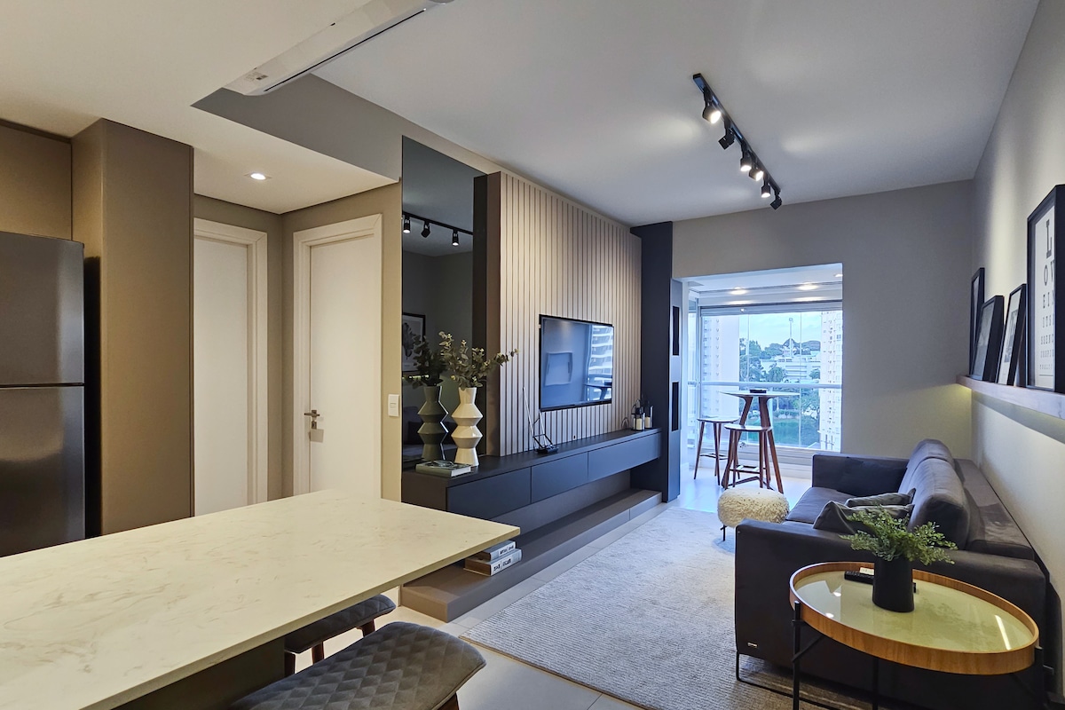 Temos aqui • Piscina Aquecida (terraço) 24h • Academia 24h • Cowork 24h • Lavanderia 24h • Mercadinho 24h • Bilhar 24h • Bicicletário c/ bikes disponibilizadas gratuitamente! • Internet rápida 500MB • Cama Queen • Churrasqueiras e forno (terraço) • Pet friendly • Estacionamento (pago) • Portaria 24h • Fácil cadastro, self check-in e acesso por código • Áreas para fumantes *toalhas e roupas de cama inclusas! *mande uma consulta!