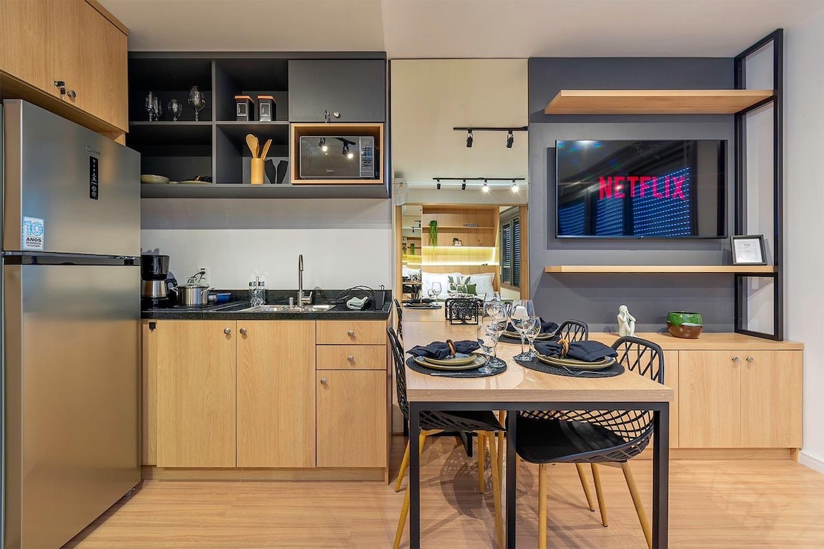 Awarded 70m2 LOFT in one of the most conceptual buildings in design in Porto Alegre, 8 minutes from the Iguatemi shopping mall. Decor inspired in Brooklyn 60's , NYC, fully furnished and ULTRA equipped, with ambient sound via amazon Alexa & various voice-controlled lighting scenarios, ultra fast fiber optic Internet (600mbps), work-station space, full kitchen, hydro for 2 people and a large infra. An experience for demanding people who seek to be surprised.