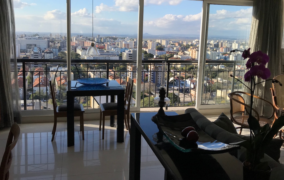 Este é o apartamento onde moro, mas como viajo muito e fico muito tempo na casa da praia, resolvi compartilhar minha "joia" com quem vem a Porto Alegre. Ele é um amplo apartamento, em estilo loft, decorado com móveis antigos mesclados com contemporâneos. Indevassável, com vista fantástica e ótima insolação. Totalmente equipado e em um condomínio com toda a infra-estrutura, localizado em uma das zonas mais valorizadas da cidade.