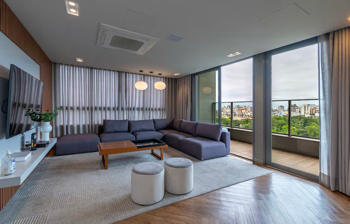 Awarded 70m2 LOFT in one of the most conceptual buildings in design in Porto Alegre, 8 minutes from the Iguatemi shopping mall. Decor inspired in Brooklyn 60's , NYC, fully furnished and ULTRA equipped, with ambient sound via amazon Alexa & various voice-controlled lighting scenarios, ultra fast fiber optic Internet (600mbps), work-station space, full kitchen, hydro for 2 people and a large infra. An experience for demanding people who seek to be surprised.