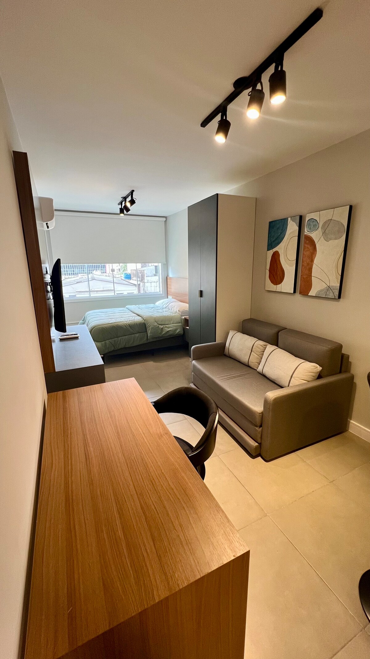 Um estúdio recentemente reformado e decorado, com tudo novinho e equipado esperando você no coração de Porto Alegre. Um local especial e aconchegante para atender as mais diversas necessidades dos viajantes de trabalho e/ou turismo, lazer, saúde. Espaço privativo composto por banheiro e studio com SOFÁ CAMA Tok & Stok super confortável, eletrodomésticos , smart tv e ar condicionado. Localizado em prédio com áreas comuns compartilhadas em conceito Coliving de ótimo padrão.