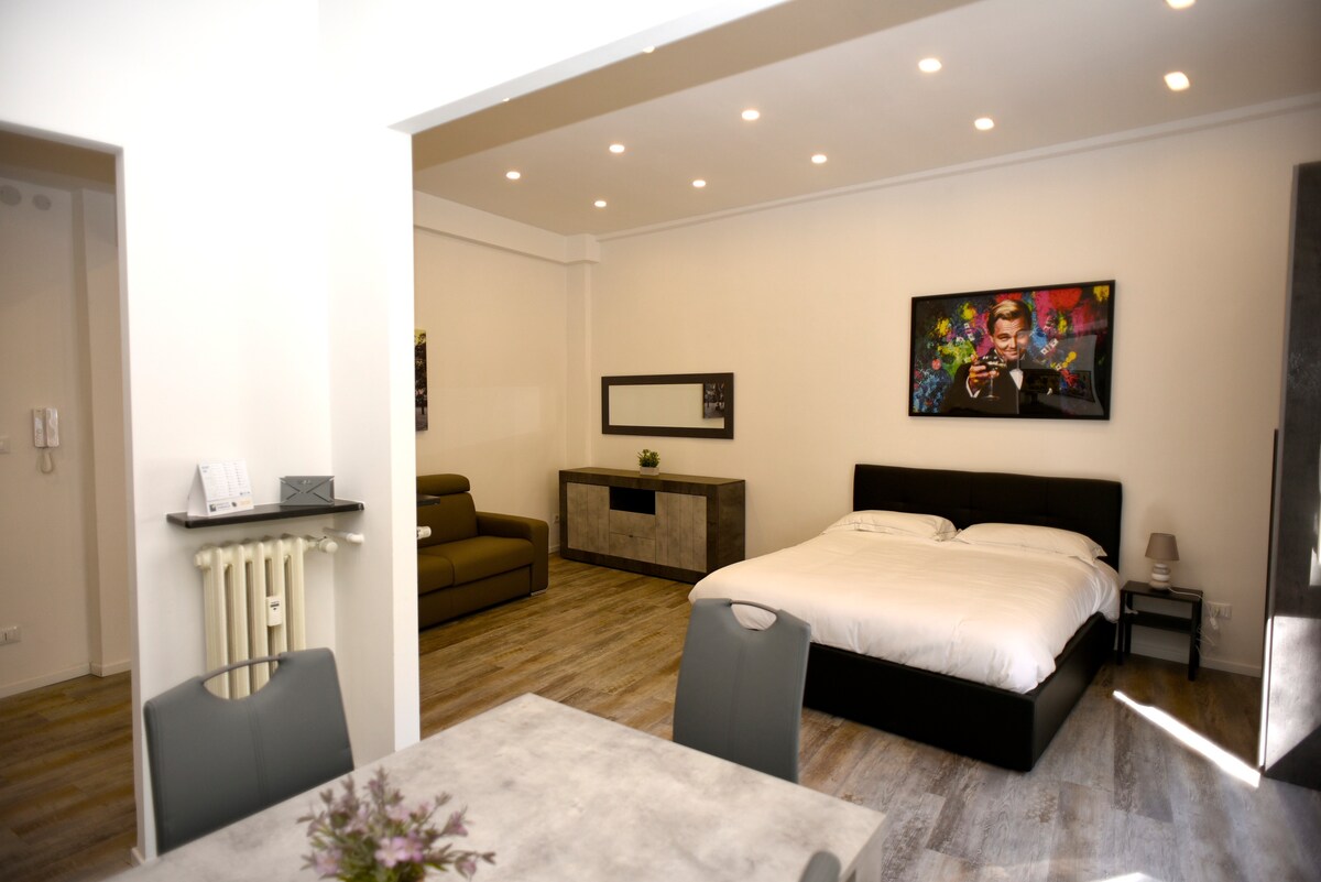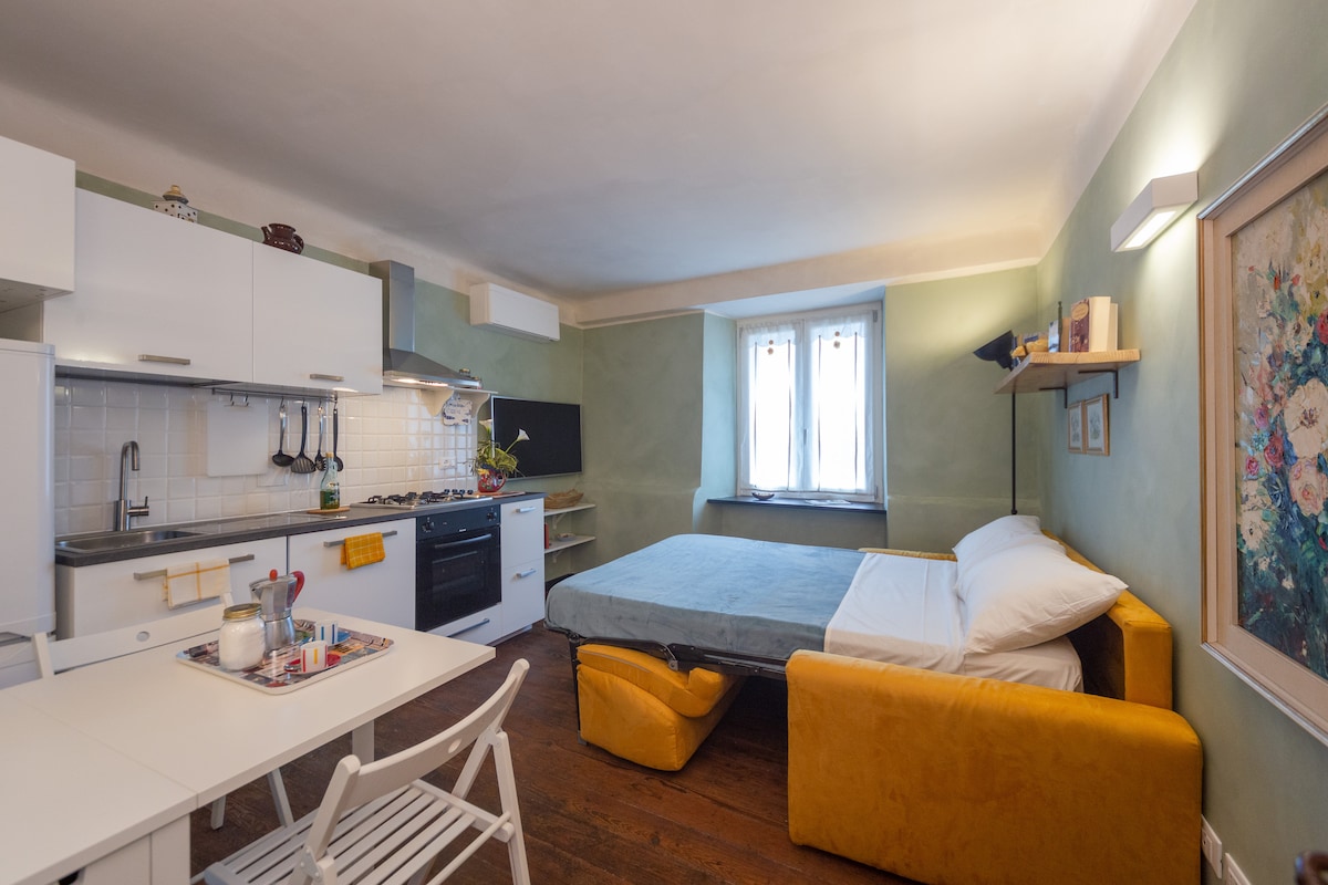 Il monolocale di 35mq è ubicato in pieno centro, a pochi passi da Via xx settembre,in un "arco " del 1600 appena ristrutturato. La struttura si compone di 6 appartamenti con ascensore, lavatrice in comune. La cucina è accessoriata, a disposizione degli ospiti the' e caffè.Letto matrimoniale, divano letto, bagno con doccia ed asciugacapelli. Finestre doppi vetri e tende oscuranti favoriscono il buon riposo. Un garage interno con 3 posti auto, da riservare previa disponibilità (20€/giorno).